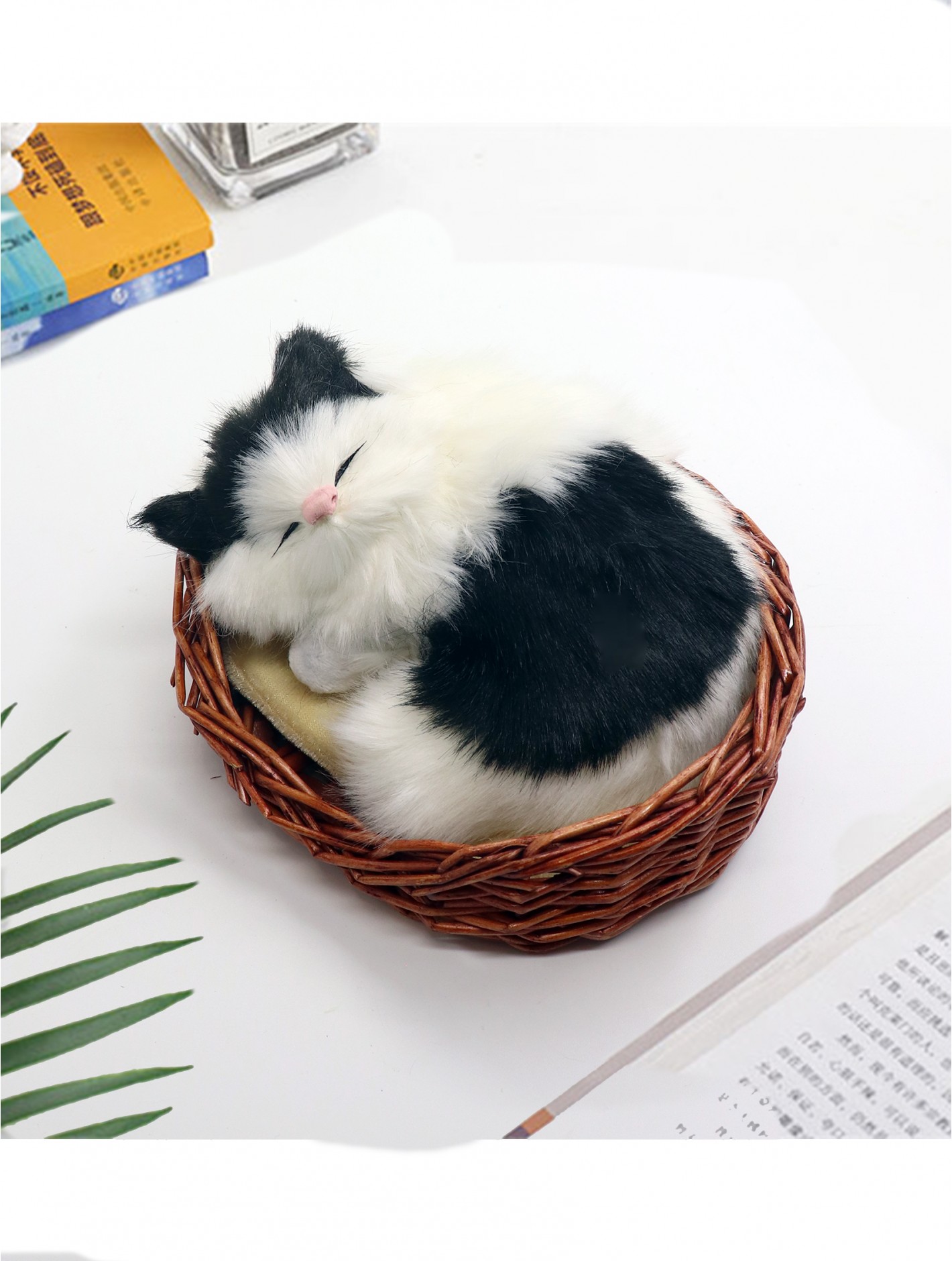 - Description: Sleeping kitty in basket that meows when you press on its back. Comes with basket (B002) Min 2