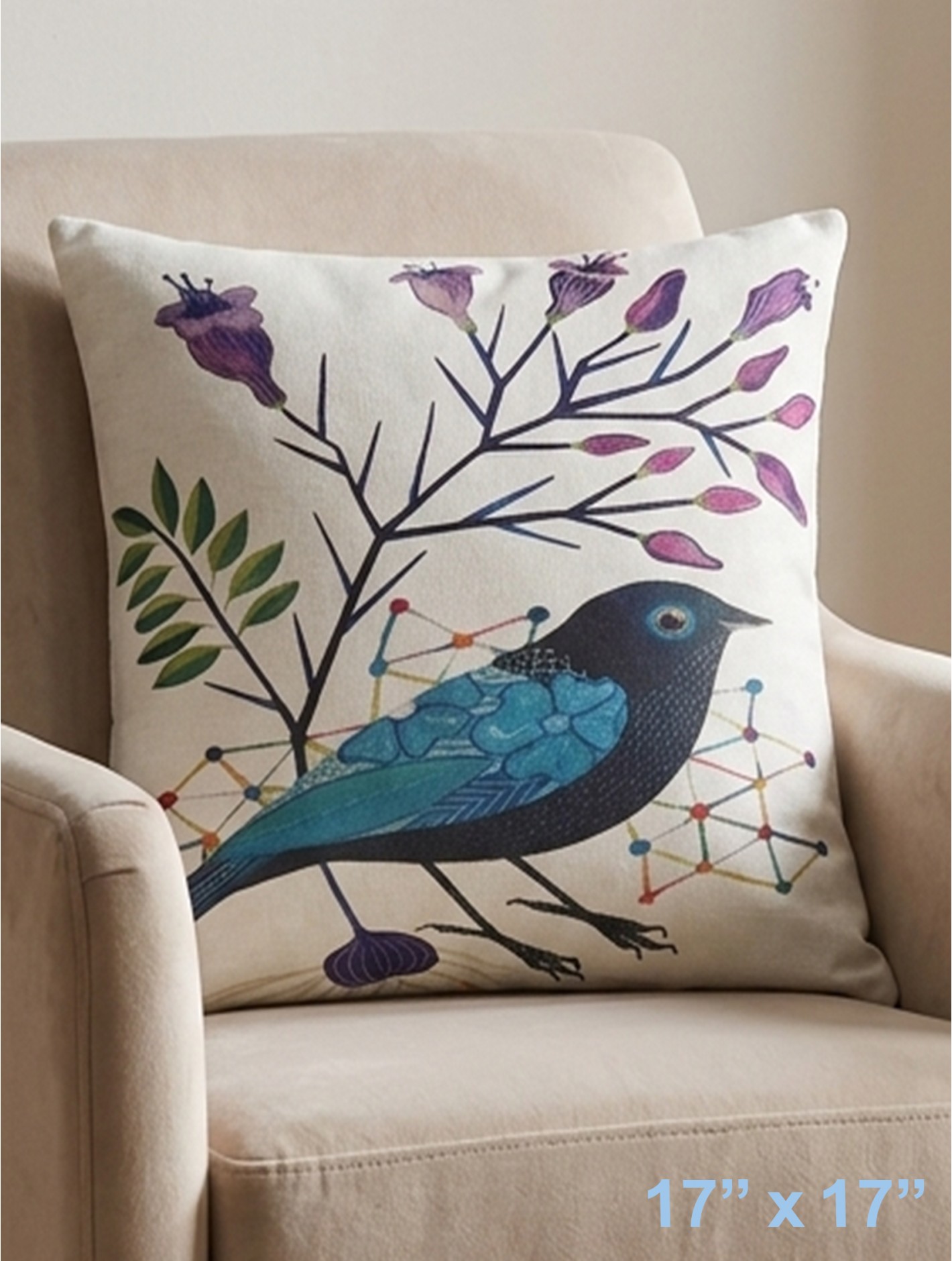 Double Sided Bird Print Cushion & Filler