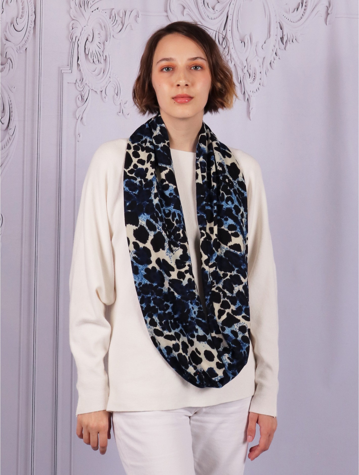 Minimum 3 Pcs. Light weight and soft feel loop scarf with leopard print. Colour: Blue