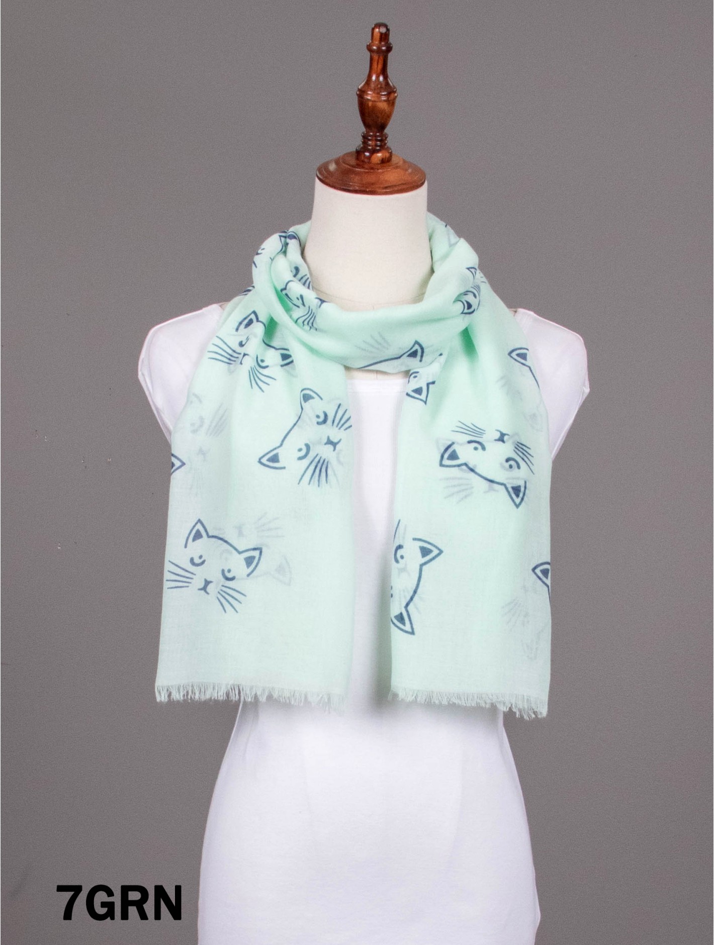 Minimum 3 pcs. Gorgeous cat design fashion scarf that can be paired with multiple outfits. Light weight fabric that is great for any spring and summery styles. Colour: Green