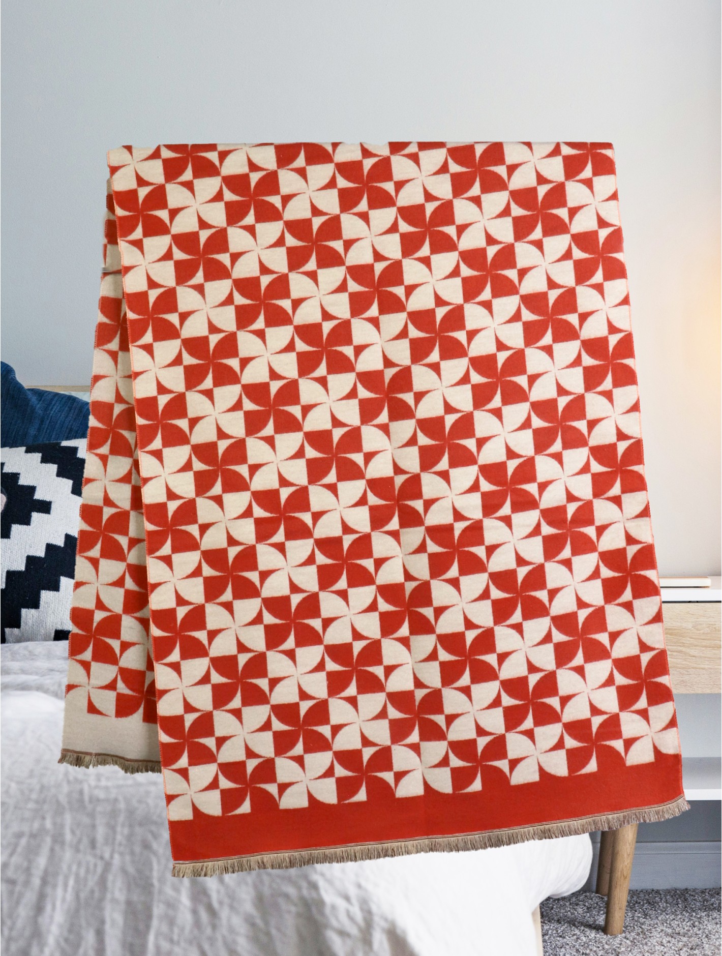 Elevate your layering game with our Pin-Wheel Design Blanket Scarf — a perfect blend of modern style and cozy comfort. Featuring a captivating all-over pin-wheel pattern in soft rose and cream tones, this oversized scarf brings visual interest and warmth to any outfit. Minimum 2 Pcs.