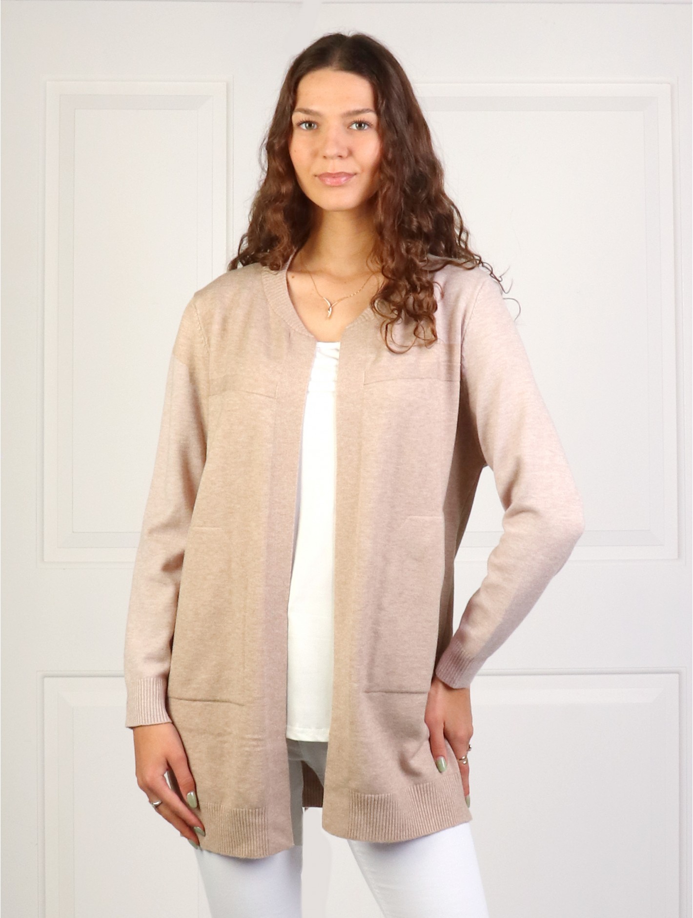 Tags: Solid Color Open-Front Sweater W/ Pockets