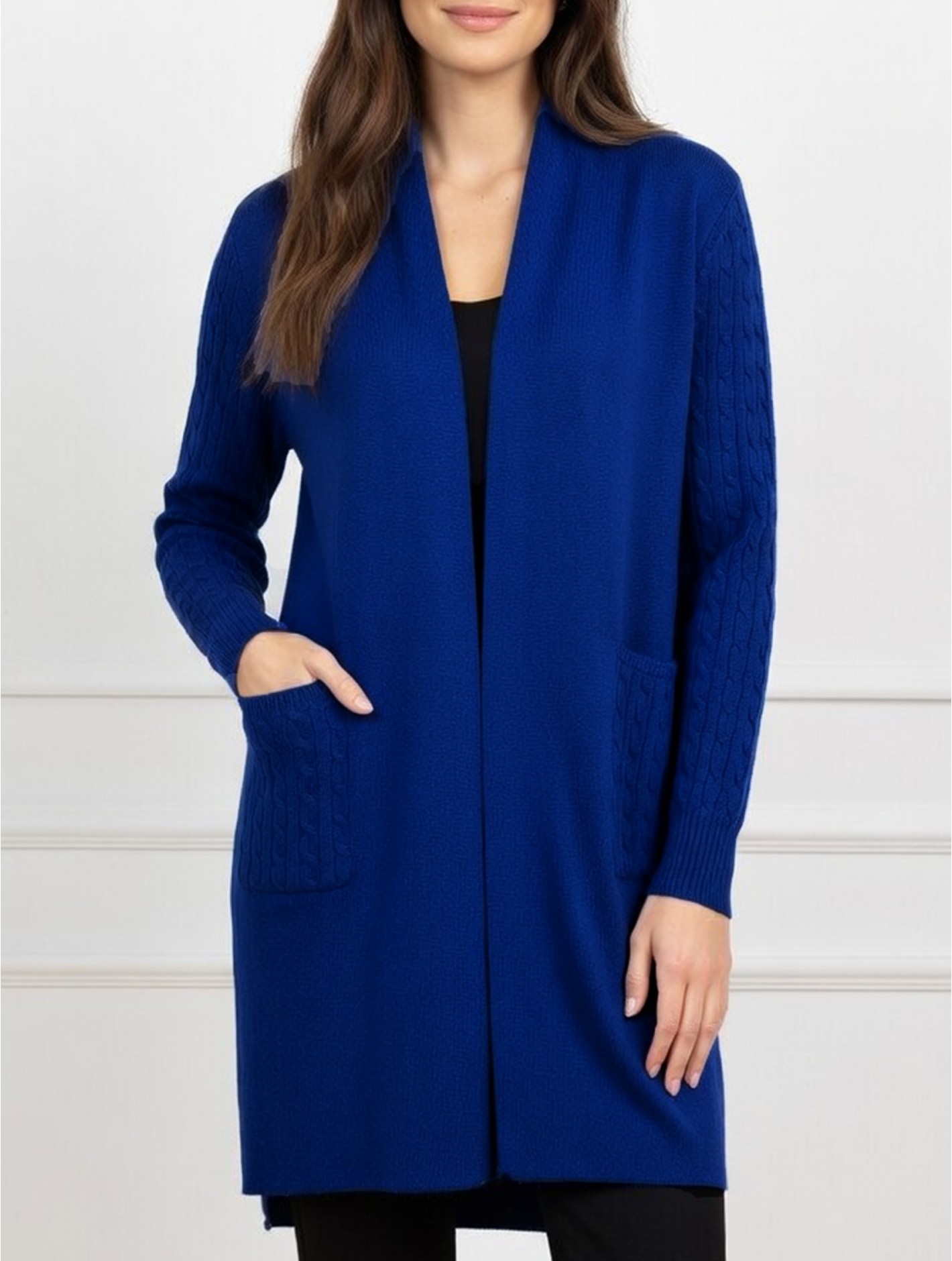 Stretchy Cable Knitted Cardigan W/ Pockets
