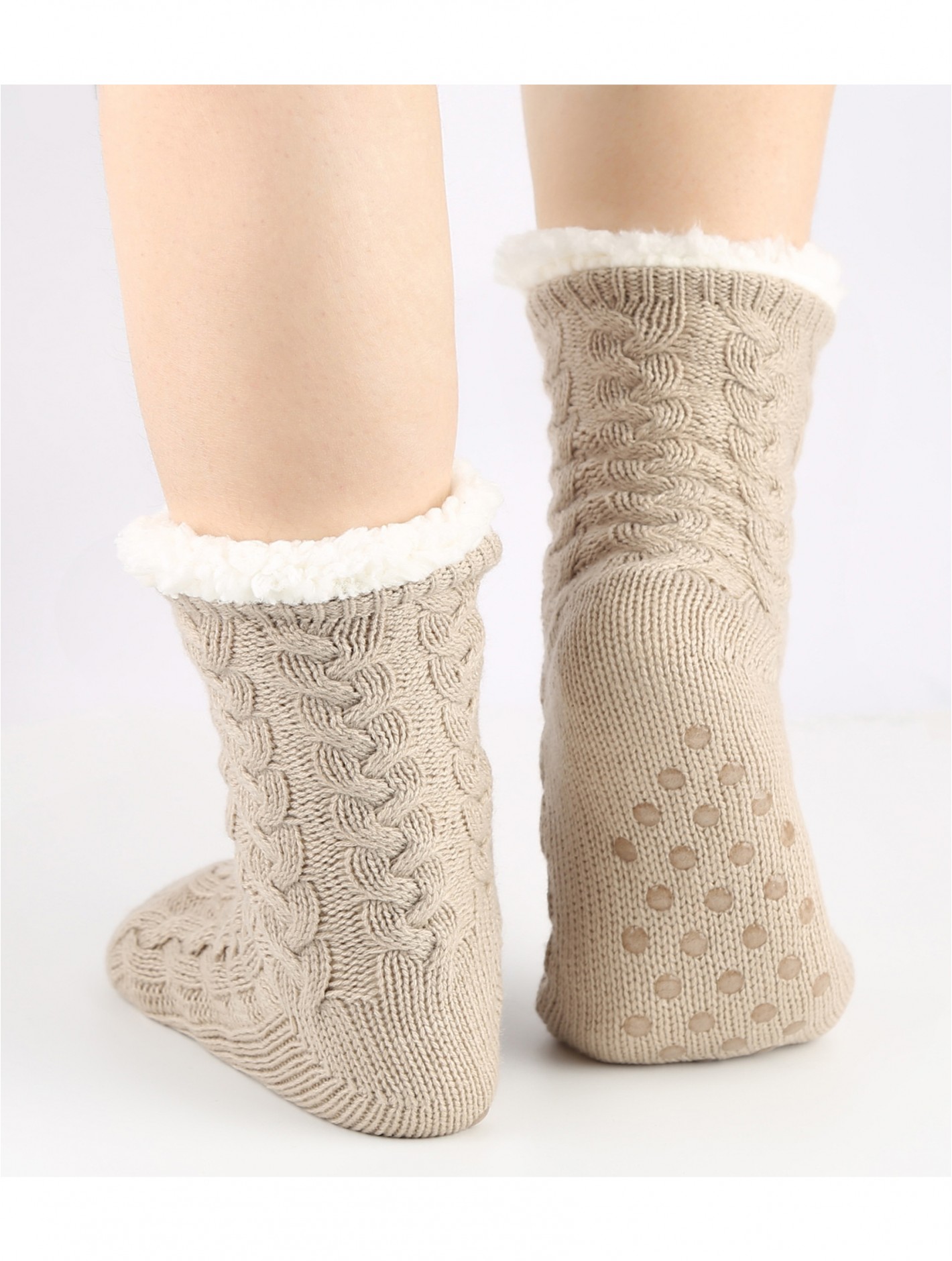 Cable Knitted Indoor Anti-Skid Slipper Socks