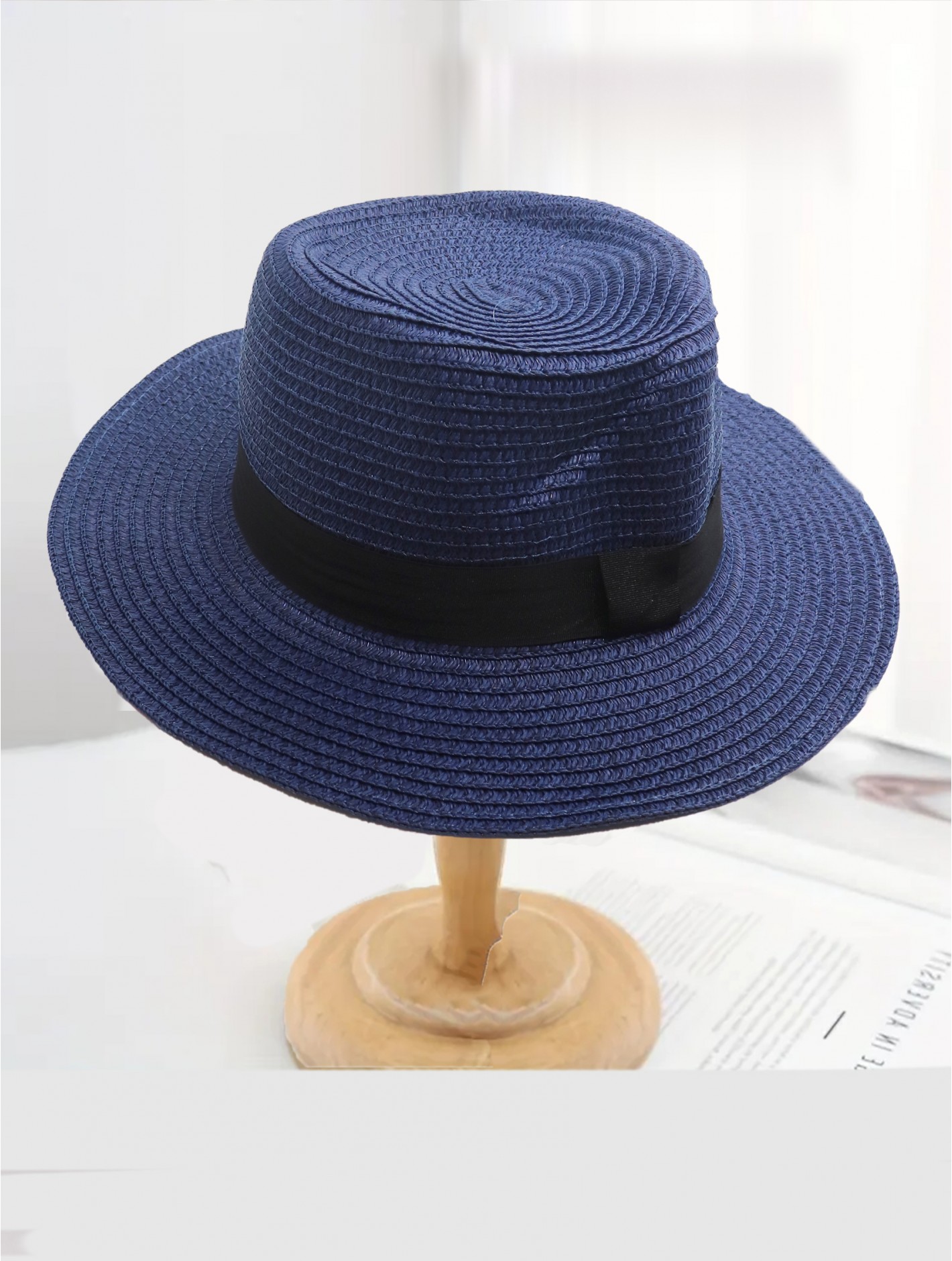 The sleek black trim adds a sophisticated contrast, giving the hat a polished, fashion-forward look that pairs effortlessly with dresses, swimsuits, or casual outfits. Lightweight and breathable, it’s as comfortable as it is chic—your must-have accessory for warm-weather outings. Min 2 pcs.Color: NAVY -