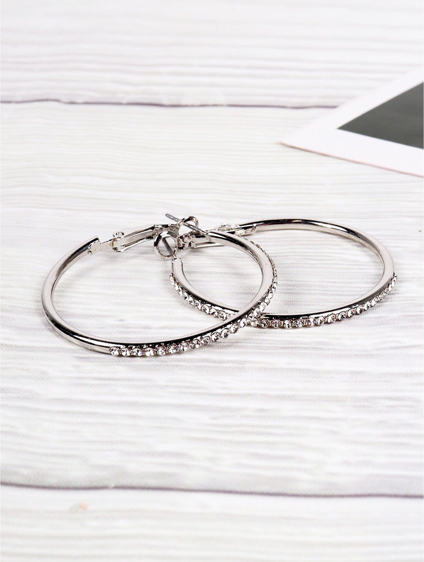 Minimum 4 sets. Add some sparkle to your outfit! Trendy Stainless Steel rhinestone hoop earrings. Zinc Alloy Nickel Free Lead Free. Color: Silver, Gold.