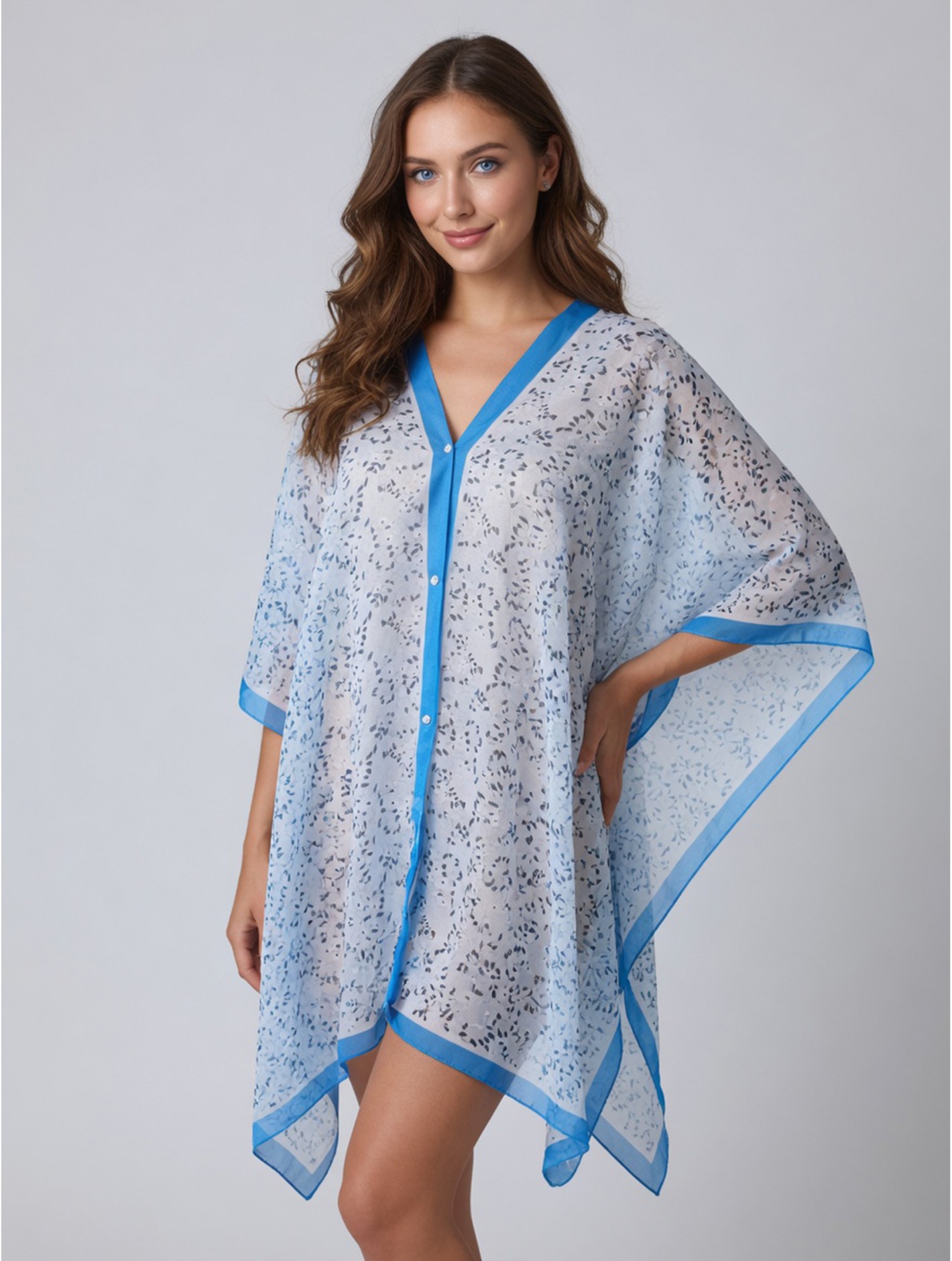 Chiffon cover-up top with a vibrant floral pattern , contoured-edge and pearl buttons to secure the front. Made with viscose, it is gentle and light on your skin, perfect to work as a cover-up during the spring or summer time. With the thin fabric, enjoy the cool breeze at the beach or on a walk and easily carry this in your bag in case you want to layer-up. Minimum 2 pcs.