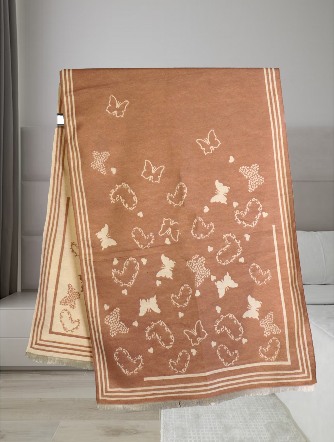 Add a touch of whimsy and warmth to your wardrobe with our Butterfly & Hearts Design Blanket Scarf — a soft, stylish accessory that’s as charming as it is cozy. This generously sized scarf features a delicate mix of fluttering butterflies and sweet heart motifs, creating a look that’s feminine, romantic, and effortlessly chic. Minimum 2 Pcs.