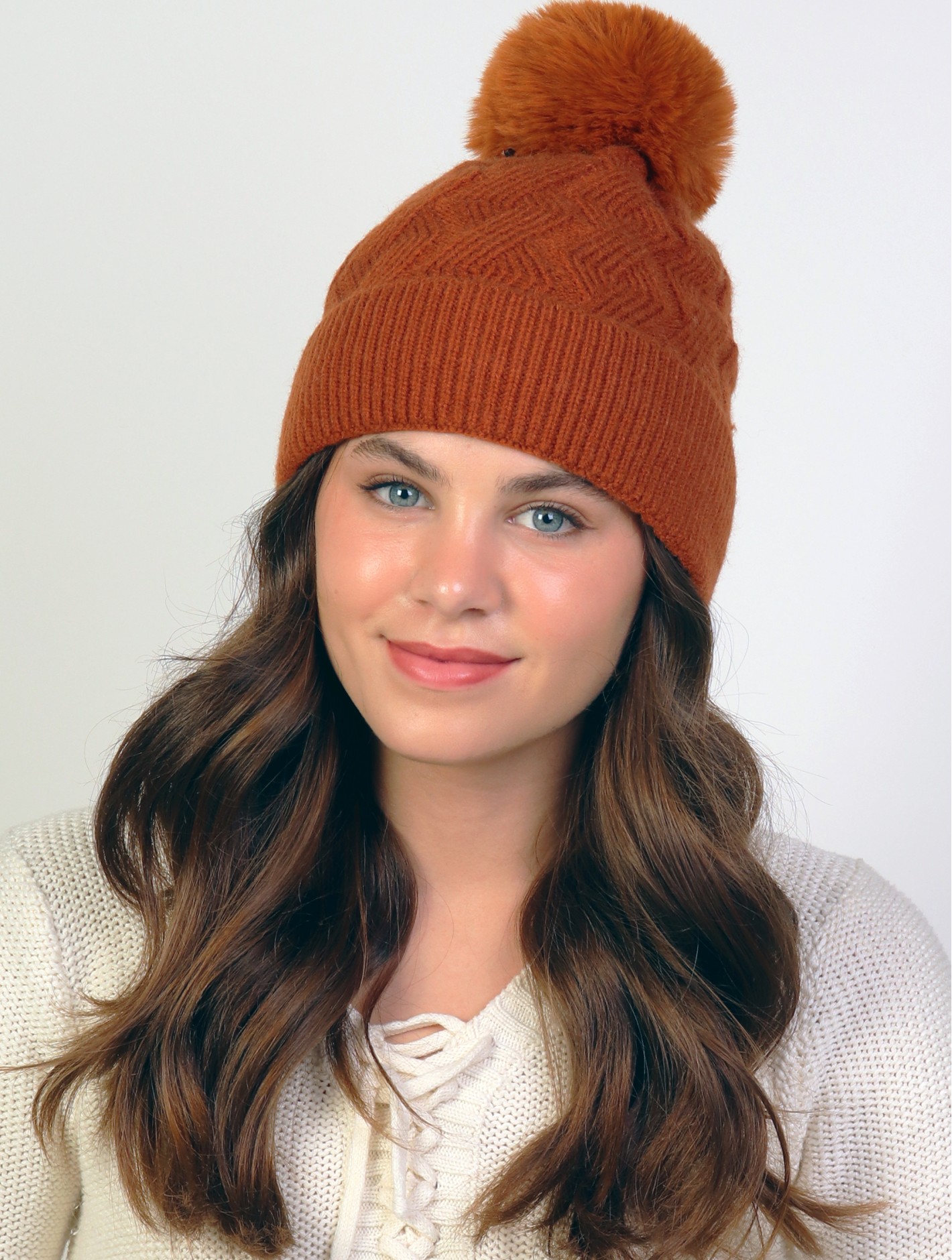 Soft Diamond Knitted Hat with Plush Pom Pom (Plush Inside)