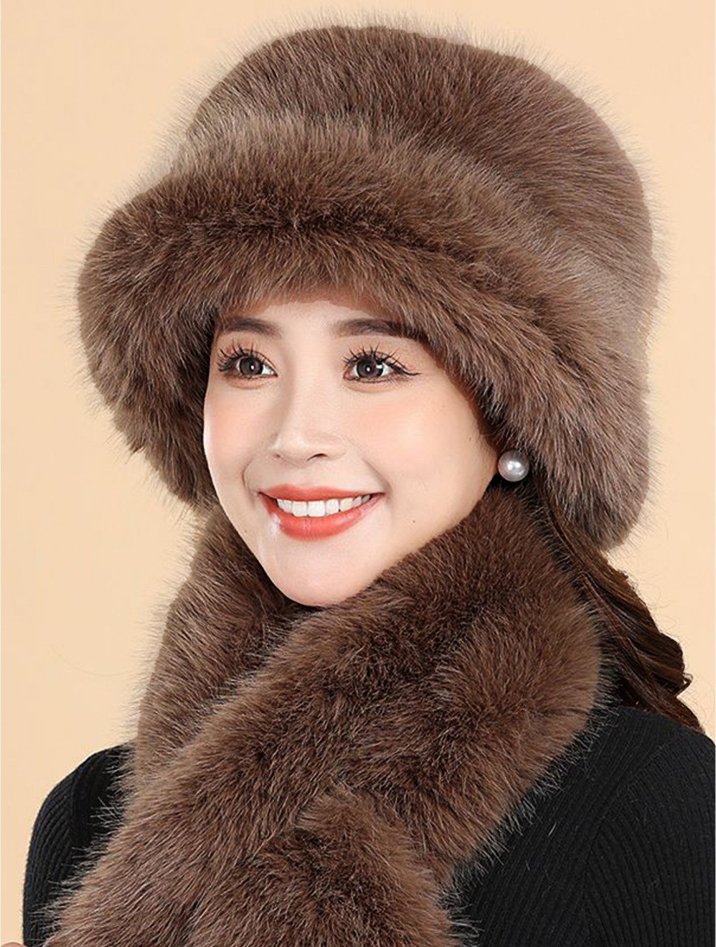 Faux Fur Plush Premium Scarf and Hat Set (SF2057 + HAT1338)
