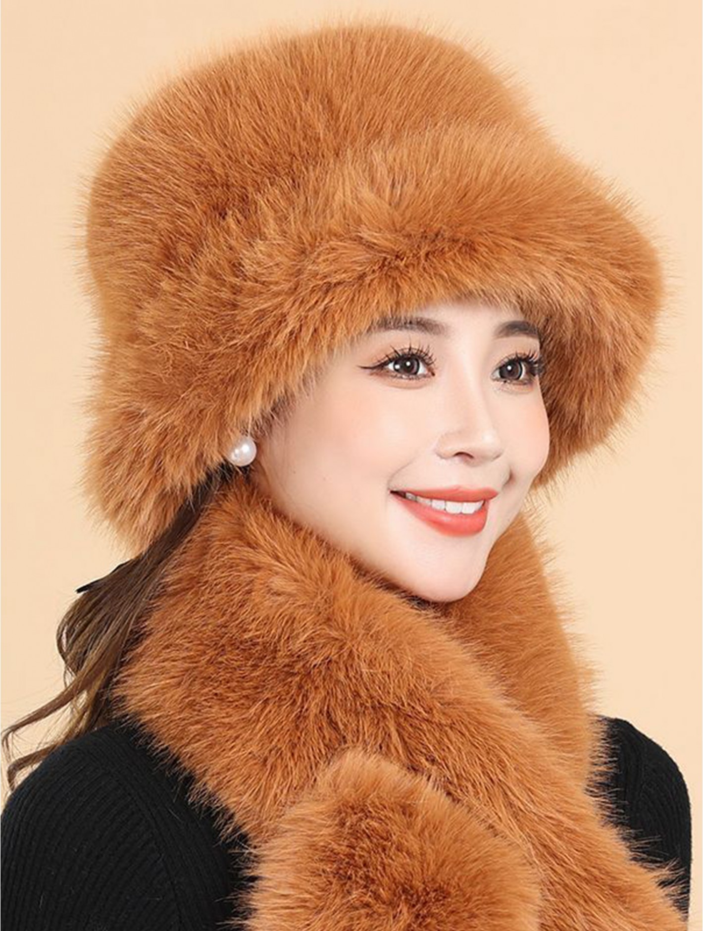 Faux Fur Plush Premium Scarf and Hat Set (SF2057 + HAT1338)