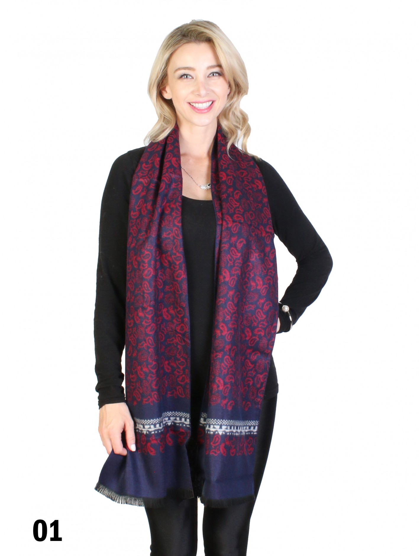 • Description: Minimum 2 pcs. Reversible Comfortable and soft hand feeling. Soft fashion unisex scarf with trendy paisley print design. Can match any casual clothing. Color: Burgundy