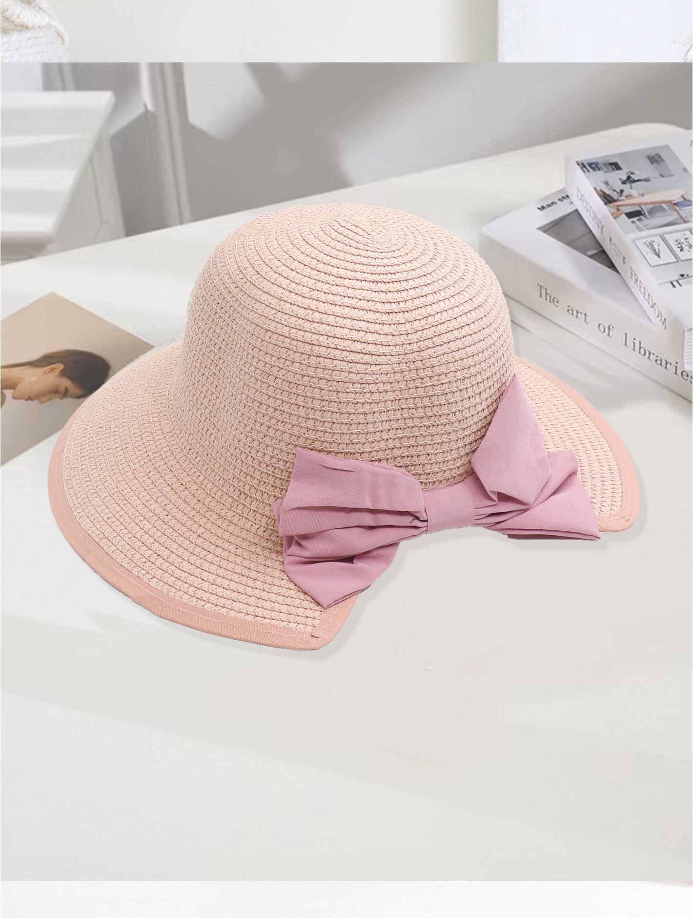 Min 2pcs. Wide Brim Summer Hat W/ Bow. Adjustable to fit a variety of head sizes.   Color: CRM