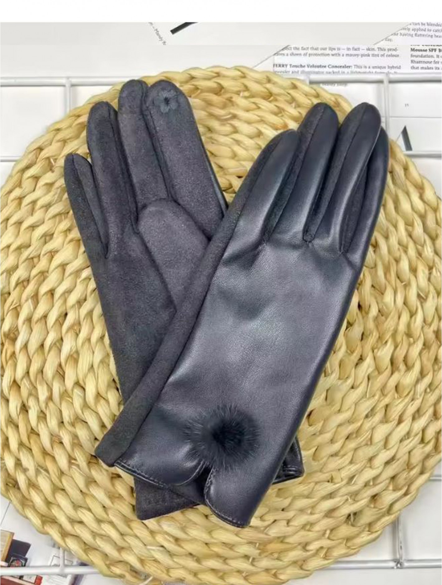 - Description: Stay stylish and connected even in chilly weather with the PU Touch Screen Gloves with Pom Pom. Made from smooth, leather-look PU material, these gloves offer a sleek, modern aesthetic while providing everyday functionality. The touch screen-compatible fingertips let you use your smartphone or tablet with easeāno need to take your gloves off. Minimum 2 pairs.