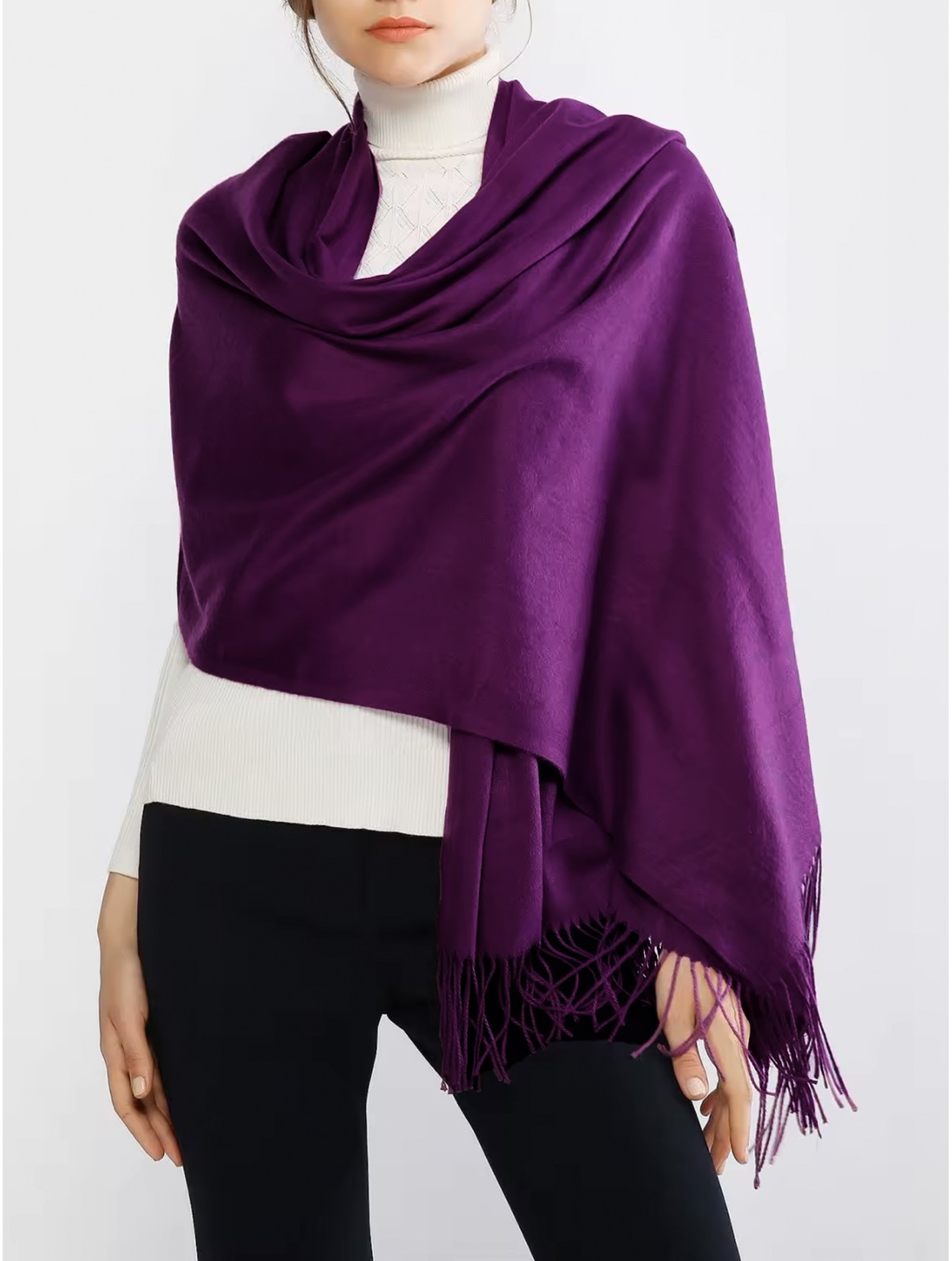 Wrap yourself in timeless style with this Solid Color Shawl Scarf featuring soft tassel accents. Lightweight yet cozy, this versatile accessory can be worn as a scarf, wrap, or shawl, adding a touch of elegance to any outfit. The classic solid color makes it easy to pair with everything in your wardrobe, while the tassels bring a hint of texture and movement. Perfect for layering in any season. Minimum 2 pcs.