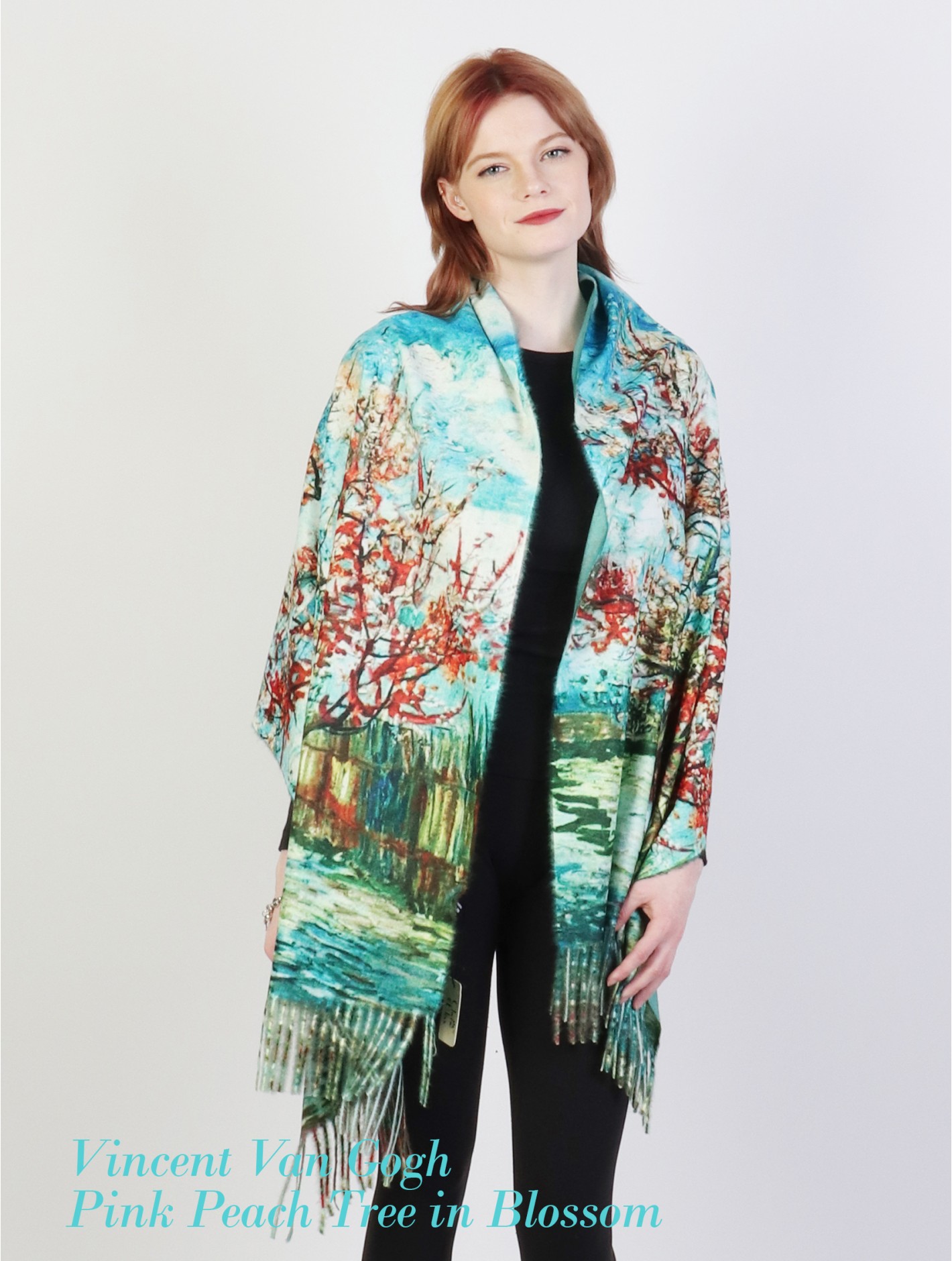 Oil painting design fashion Scarf with tassels. Soft touch feeling, great for any spring and summery styles. Minimum 2 pcs.