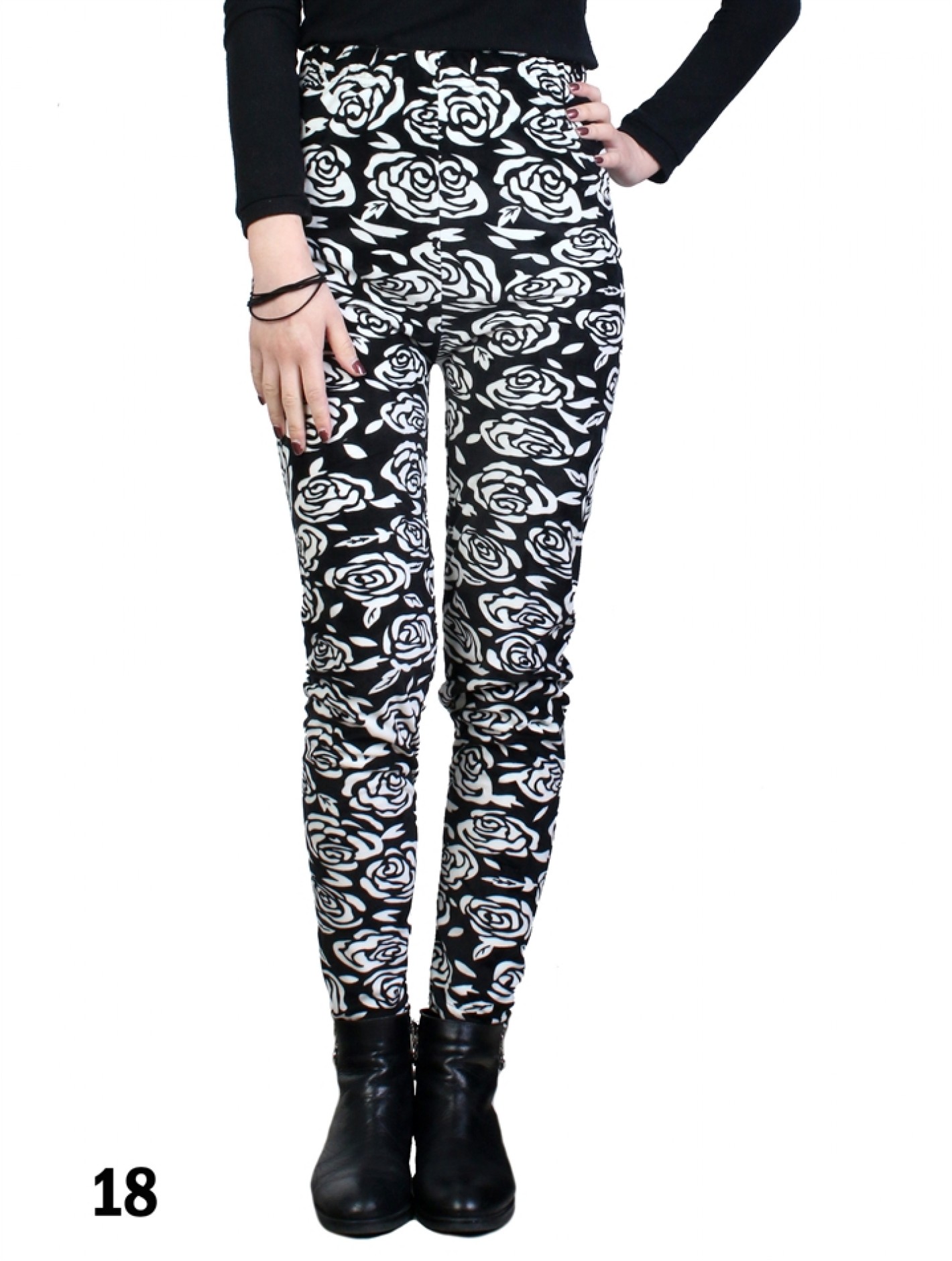 - Description: Minimum 2 pcs. Velvet blossom flower printed legging. Added thickness to keep you warm for this season.! Acrylic stretch fabric. Soft hand feel. One size fits all. Colour: Black White Combo