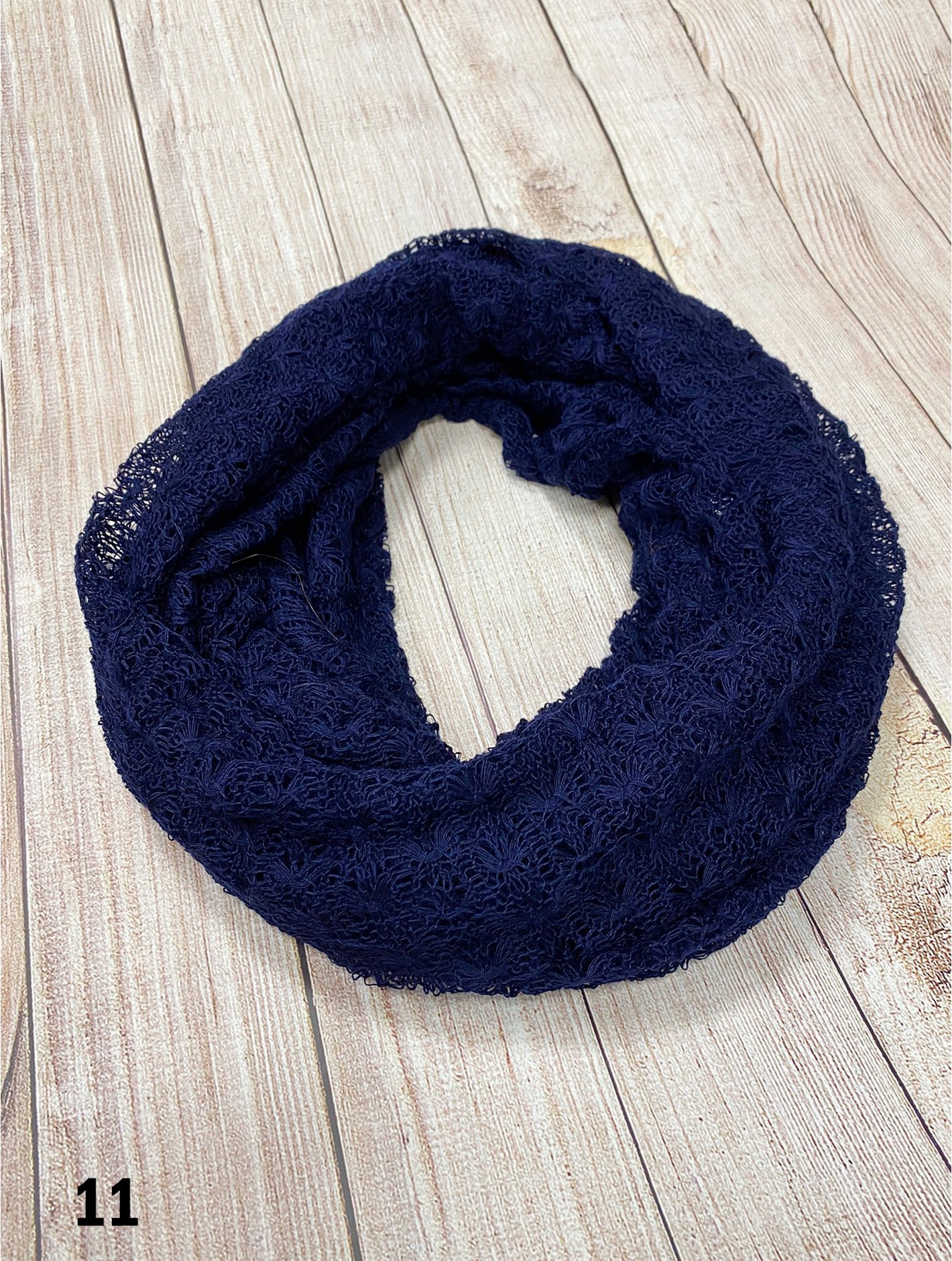 • Description: Minimum  4 pcs. Lace 1 layer knit circle scarf. Light weight and perfect for transitional weather. Color: Navy