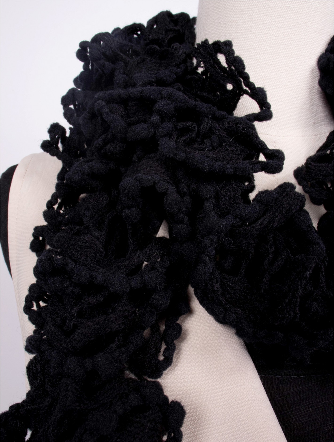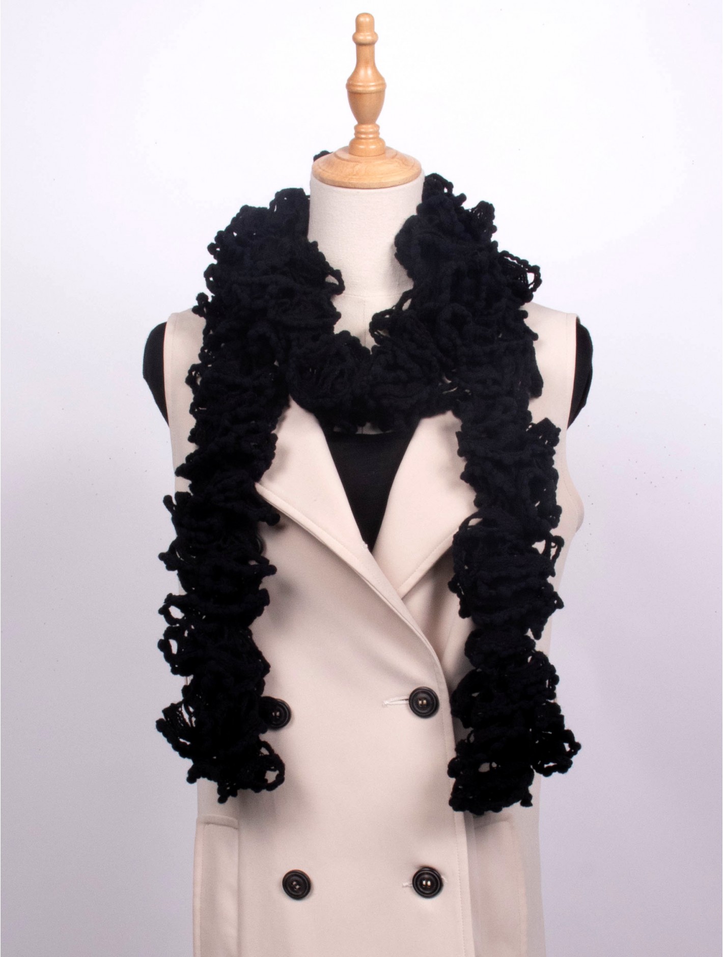 - Description: Minimum 7 Pcs. Handcrafted ruffle scarf, multi-coloured. Colour: Black
