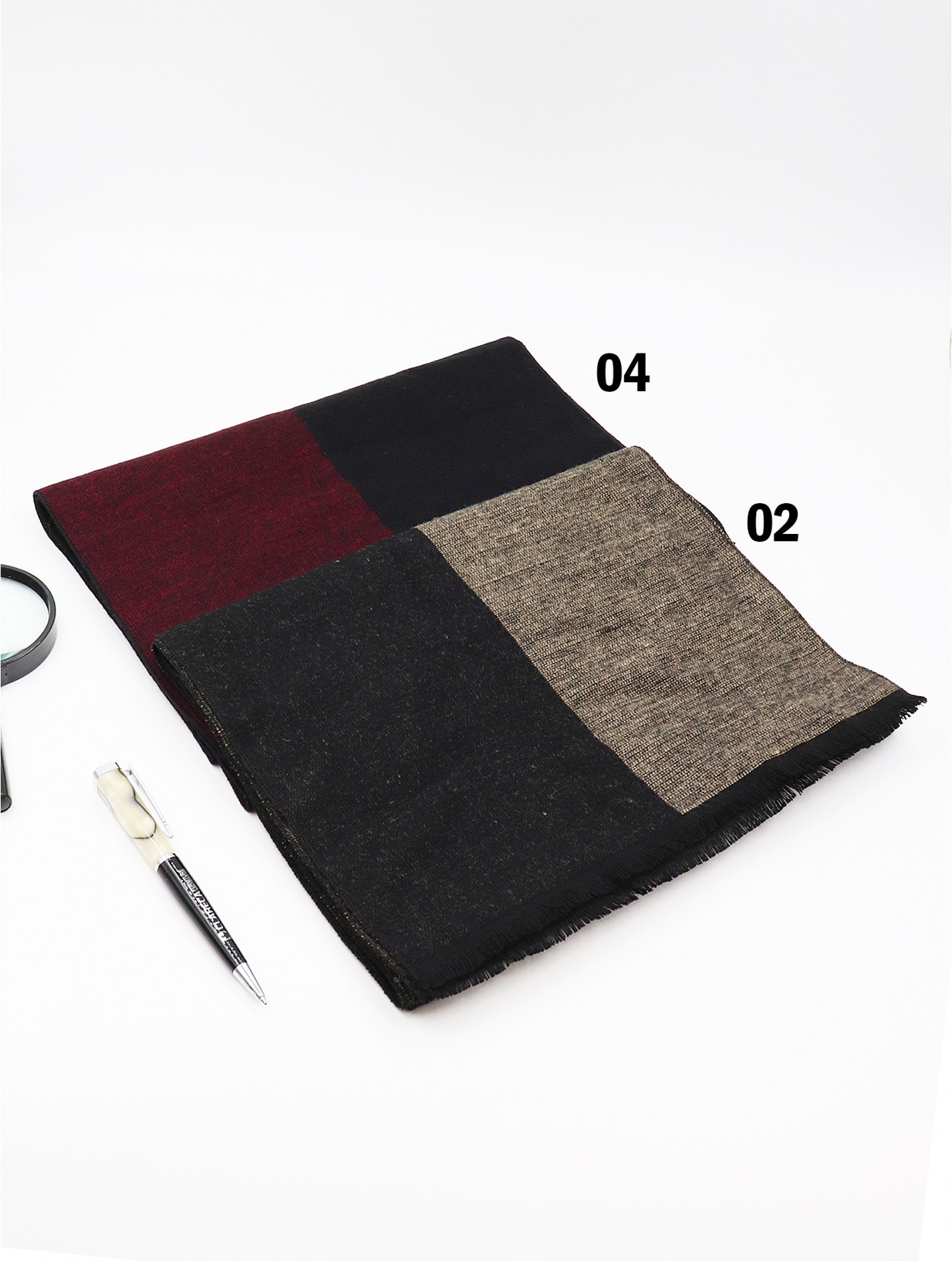 - Description: Minimum 2 pcs. Reversible Comfortable and soft hand feeling. Soft fashion unisex scarf with trendy two tone colour design. Can match any casual clothing. Color: Black/Burgundy