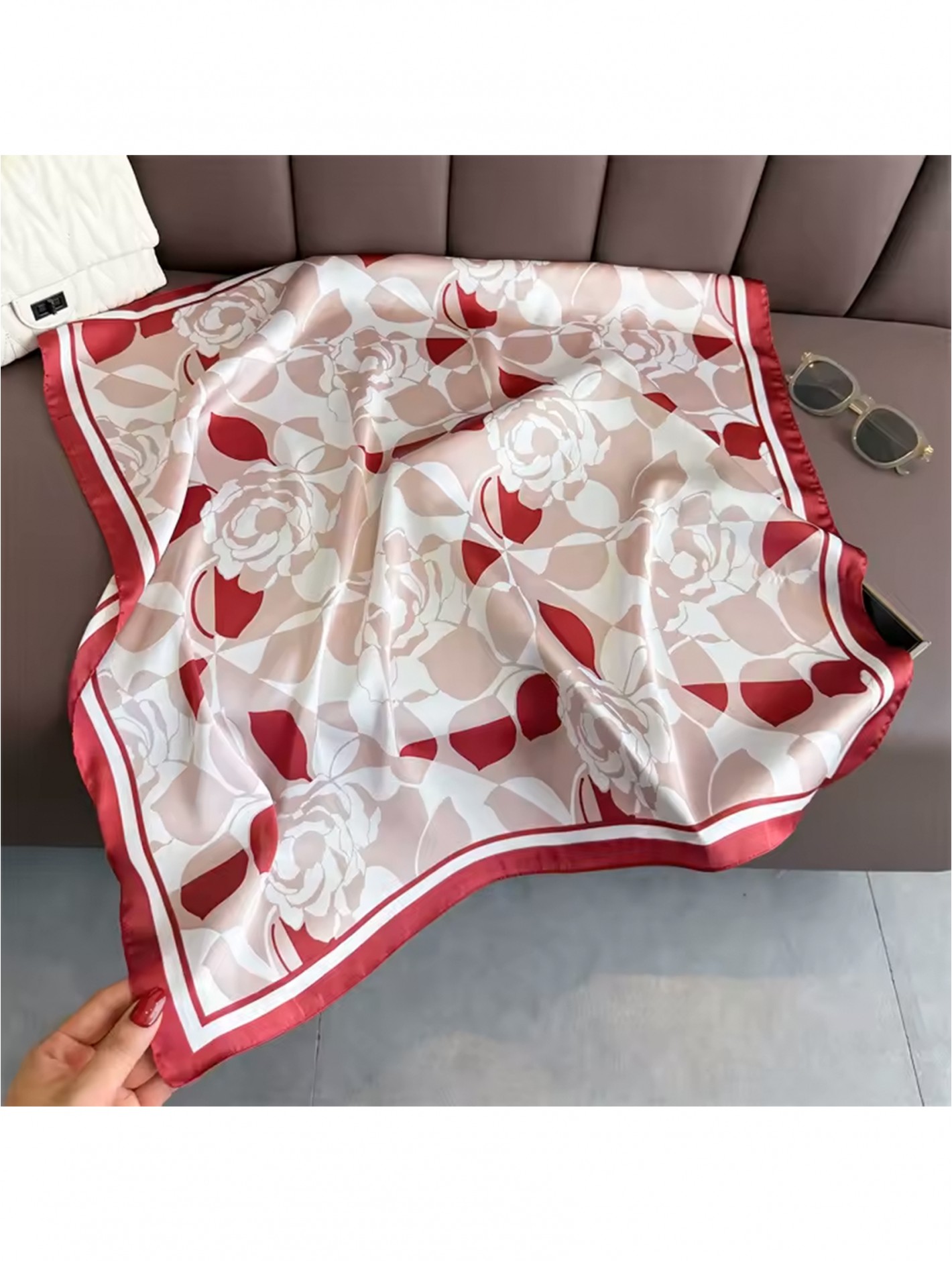 Add a touch of elegance to any outfit with our Silk Feeling Floral Patterned Square Scarf. Lightweight, silky-smooth, and beautifully detailed, this scarf brings a soft, luxurious feel without the high-maintenance of real silk. The vibrant floral print adds a timeless feminine flair, making it perfect for tying around the neck, in your hair, on a handbag, or even as a chic top. Minimum 3 pcs.