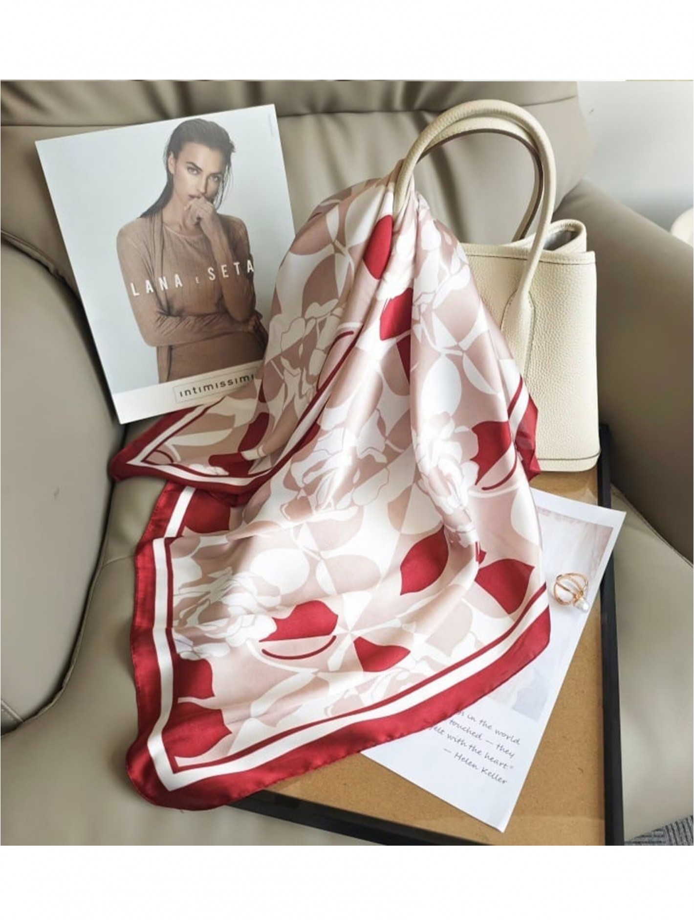 Tags: Silk Feeling Floral Patterned Square Scarf