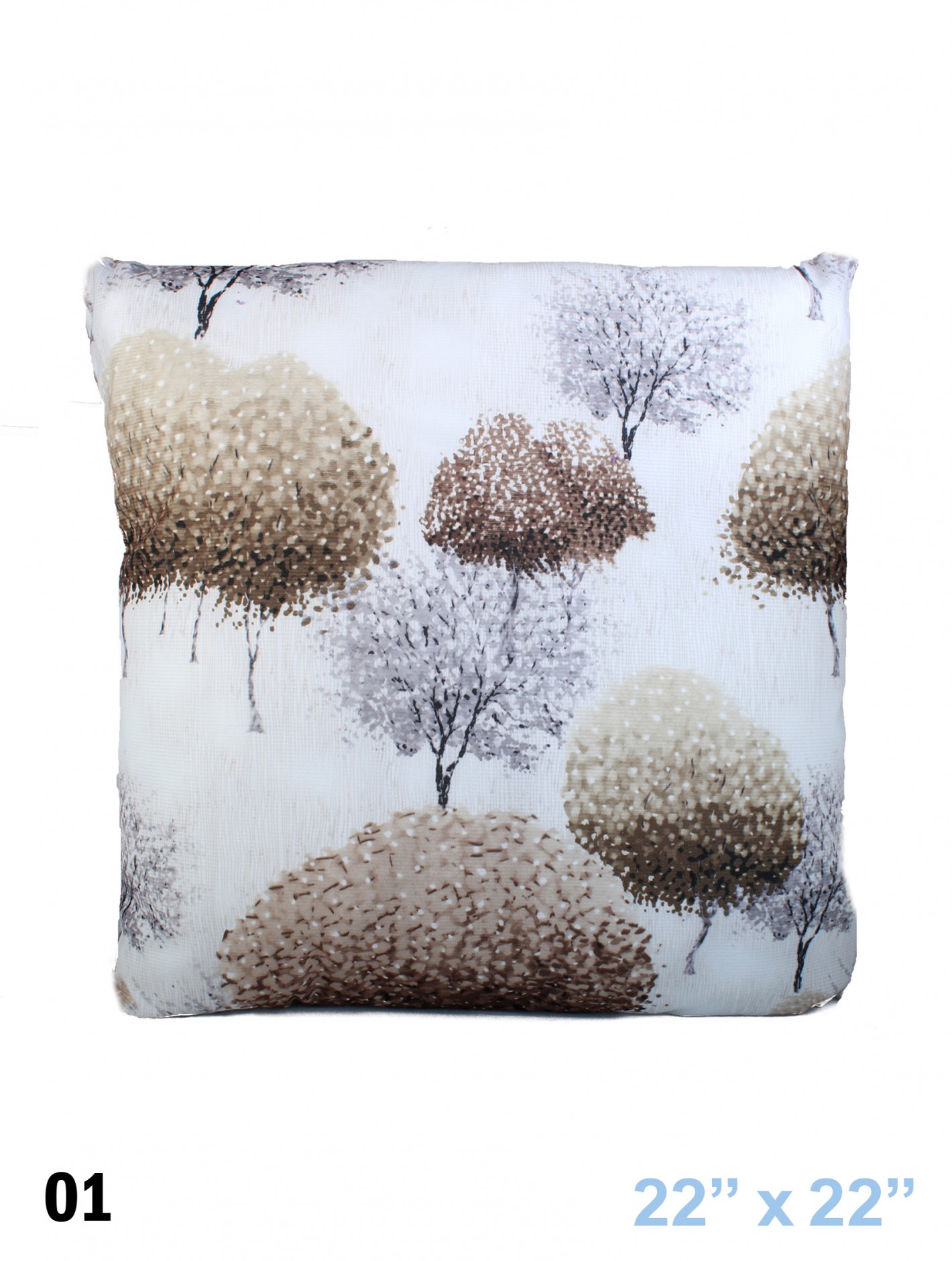- Description: Minimum 2 sets. Ink printed trees cushion cover with filler. Great for a window display and for home decor. Colour: Khaki