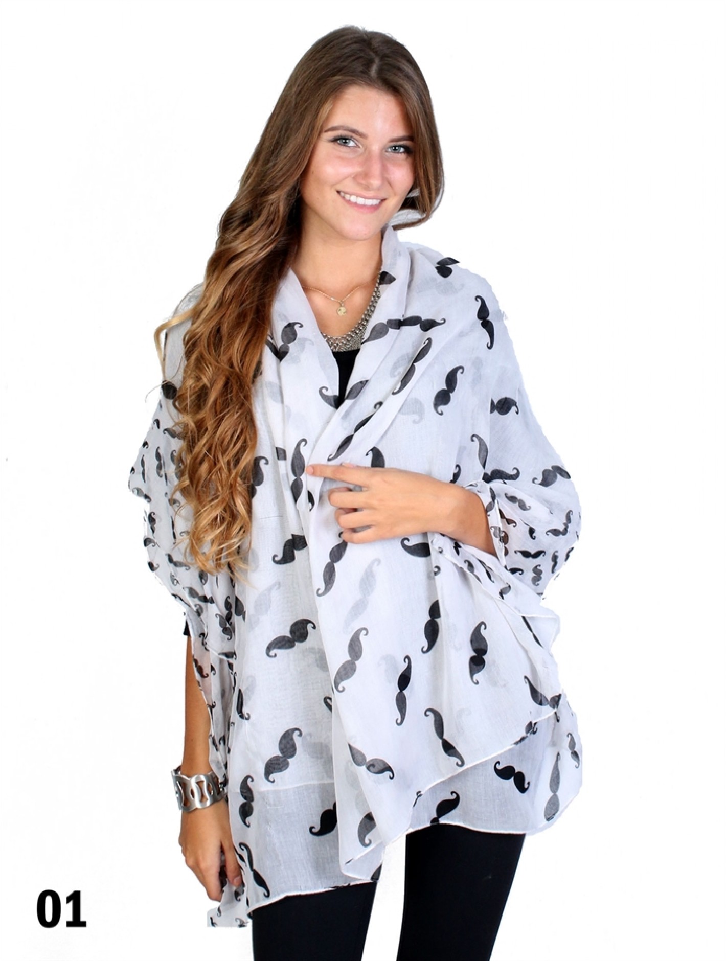 - Description: Minimum 2 Pcs. Linen scarf with moustache print. Colour: White and Black