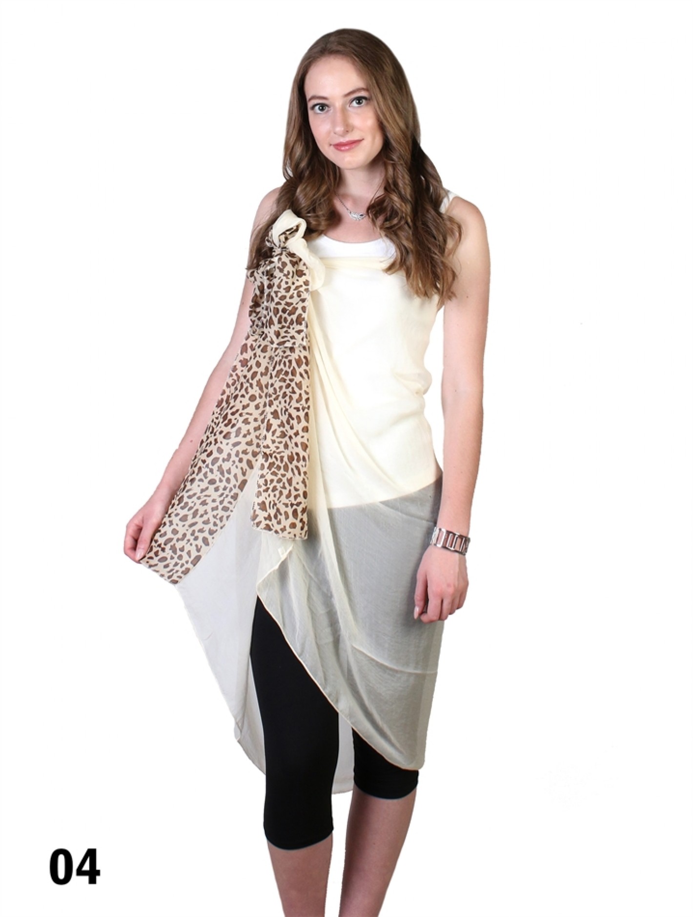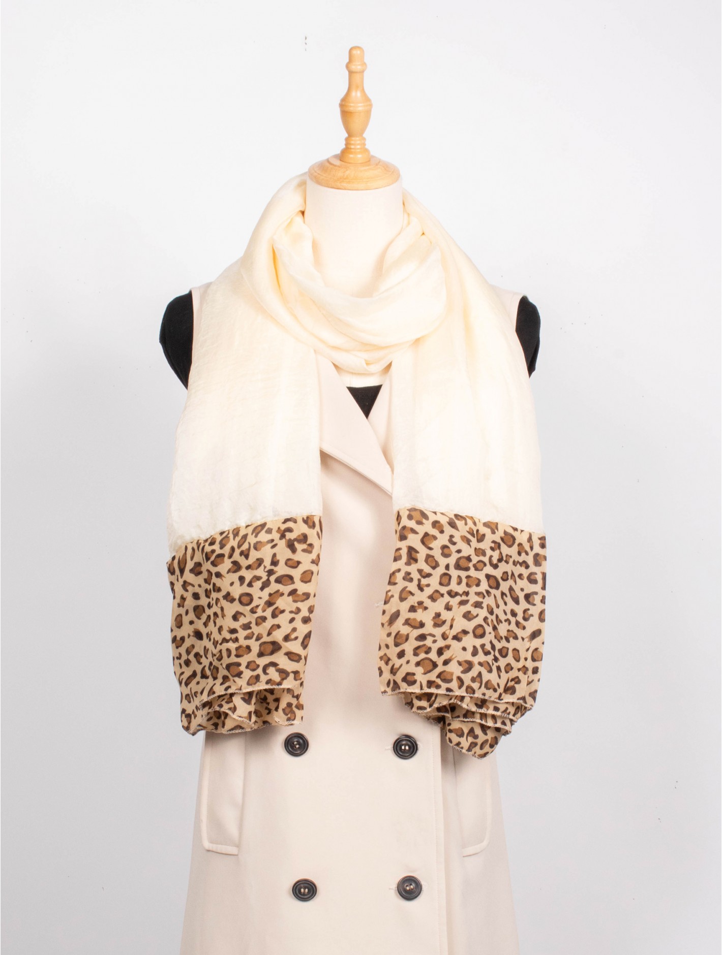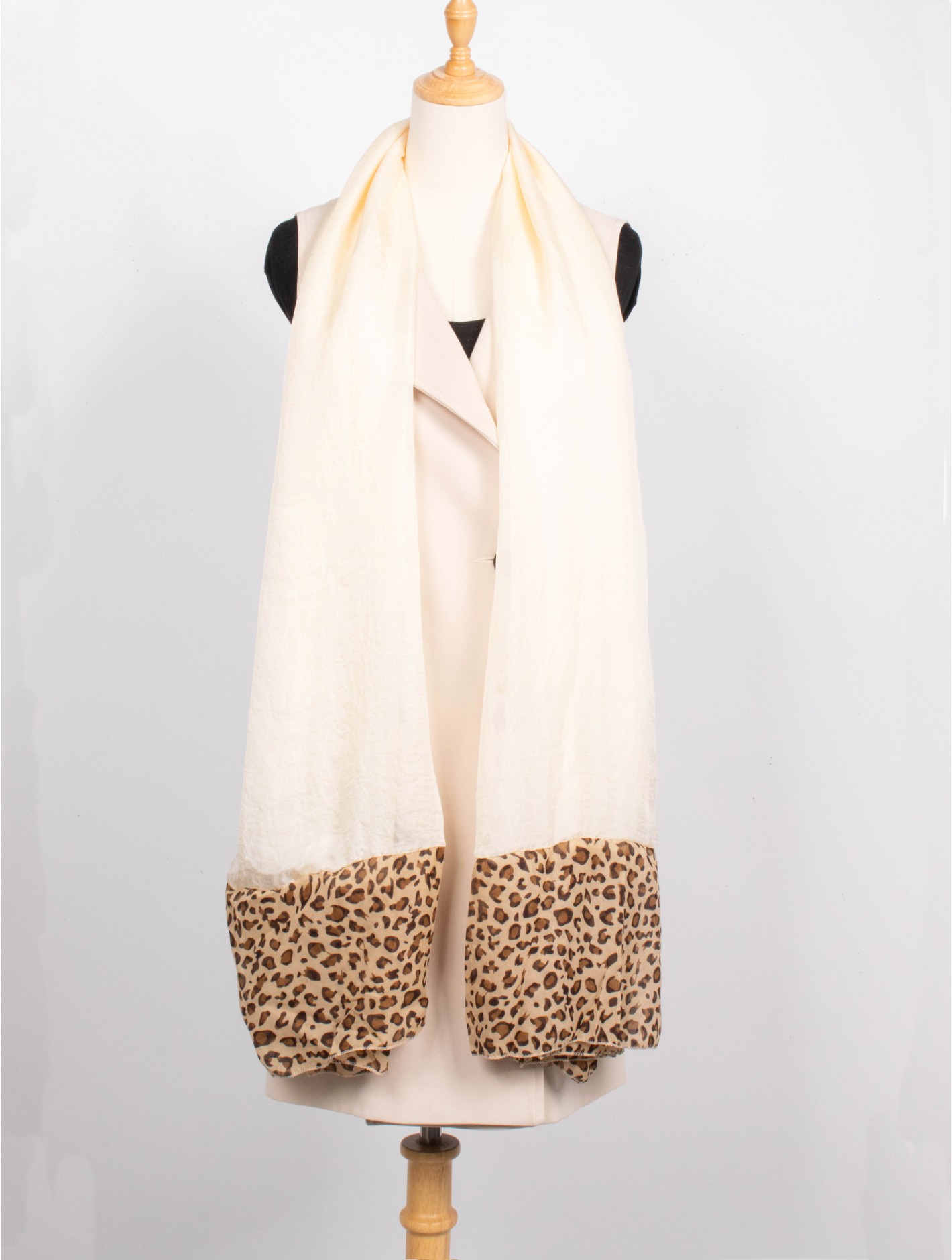 - Description: Chiffon scarf with leopard end. Colour: Cream Minimum 4 Pcs. .