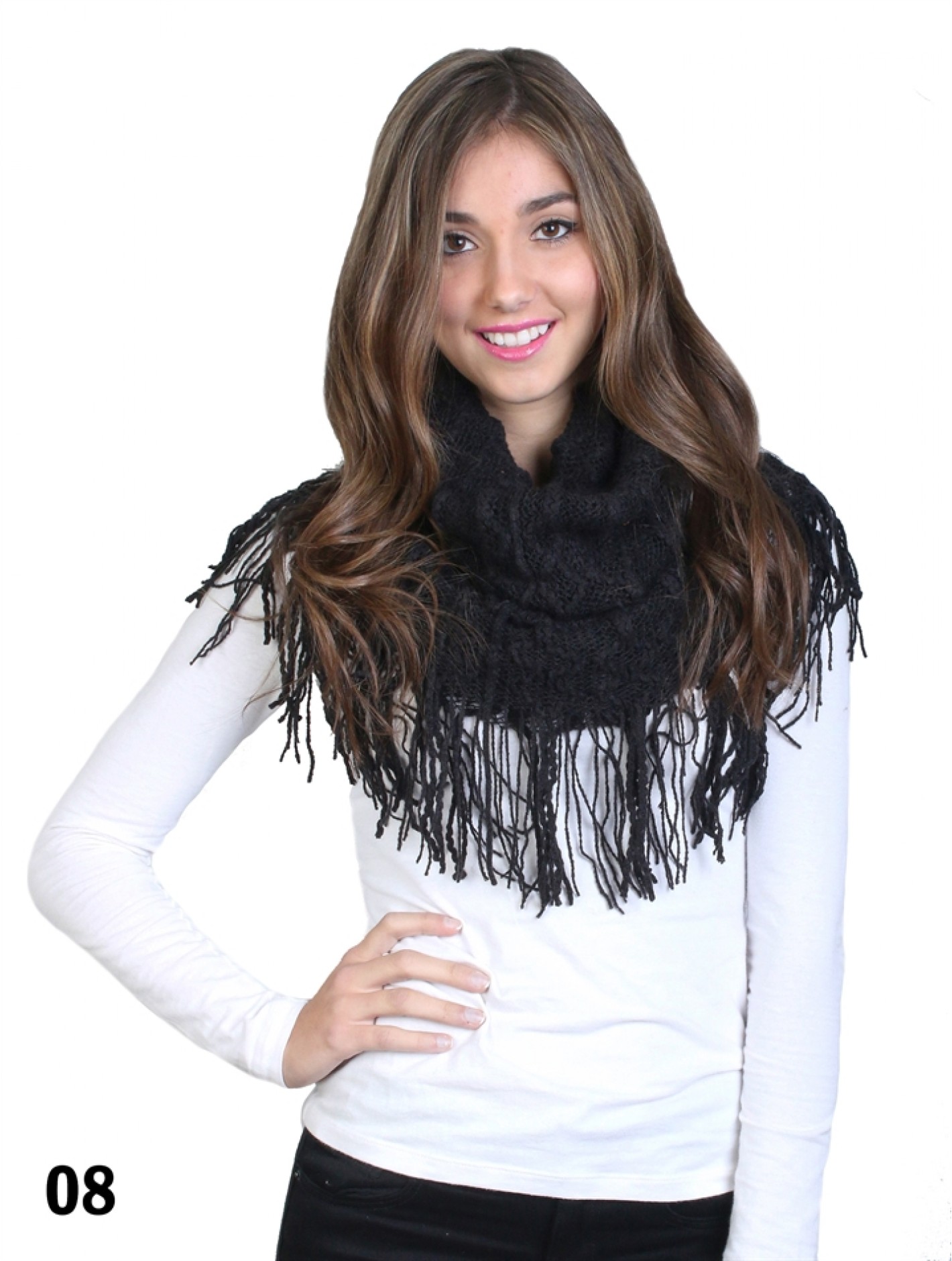 - Description: Minimum 2 Pcs. Two toned knit lantern pattern magic scarf. Multi function: wear as a regular scarf or a circle scarf. Colour: Black