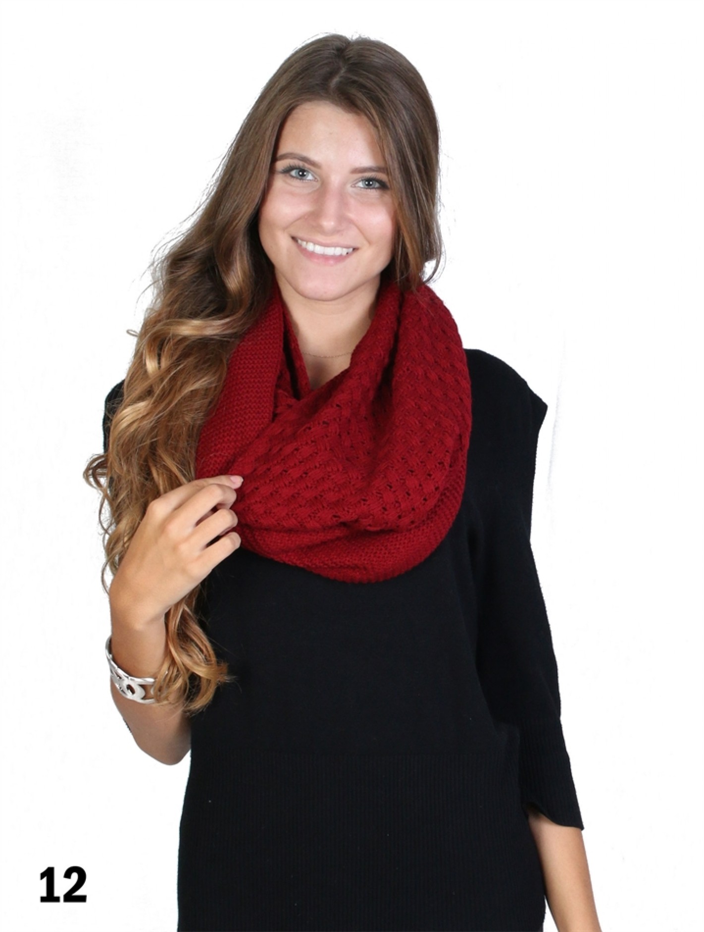 Minimum 2 Pcs Monthly Special Texture weave knit circle scarf. Unisex style. Colour: Dark Red