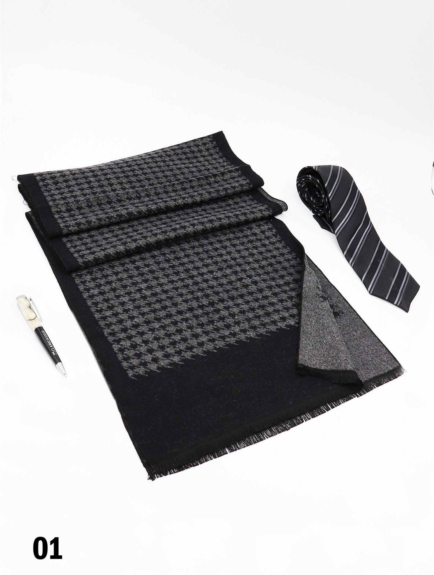 - Description: Minimum 2 pcs. Reversible Comfortable and soft hand feeling. Soft fashion unisex scarf with trendy houndstooth print design. Can match any casual clothing. Color: Black/Grey