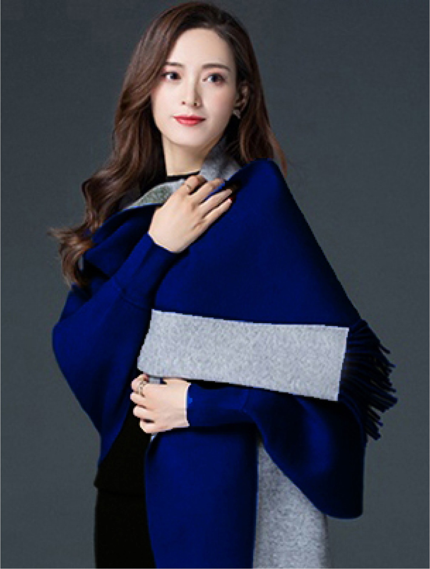 Soft cashmere reversiable cool cape. Made with Premium material, super soft and comfortable. Reversible colour inside to add a twist of delight, can be wear inside out. Fringe: 2" Minimum 2 pcs.