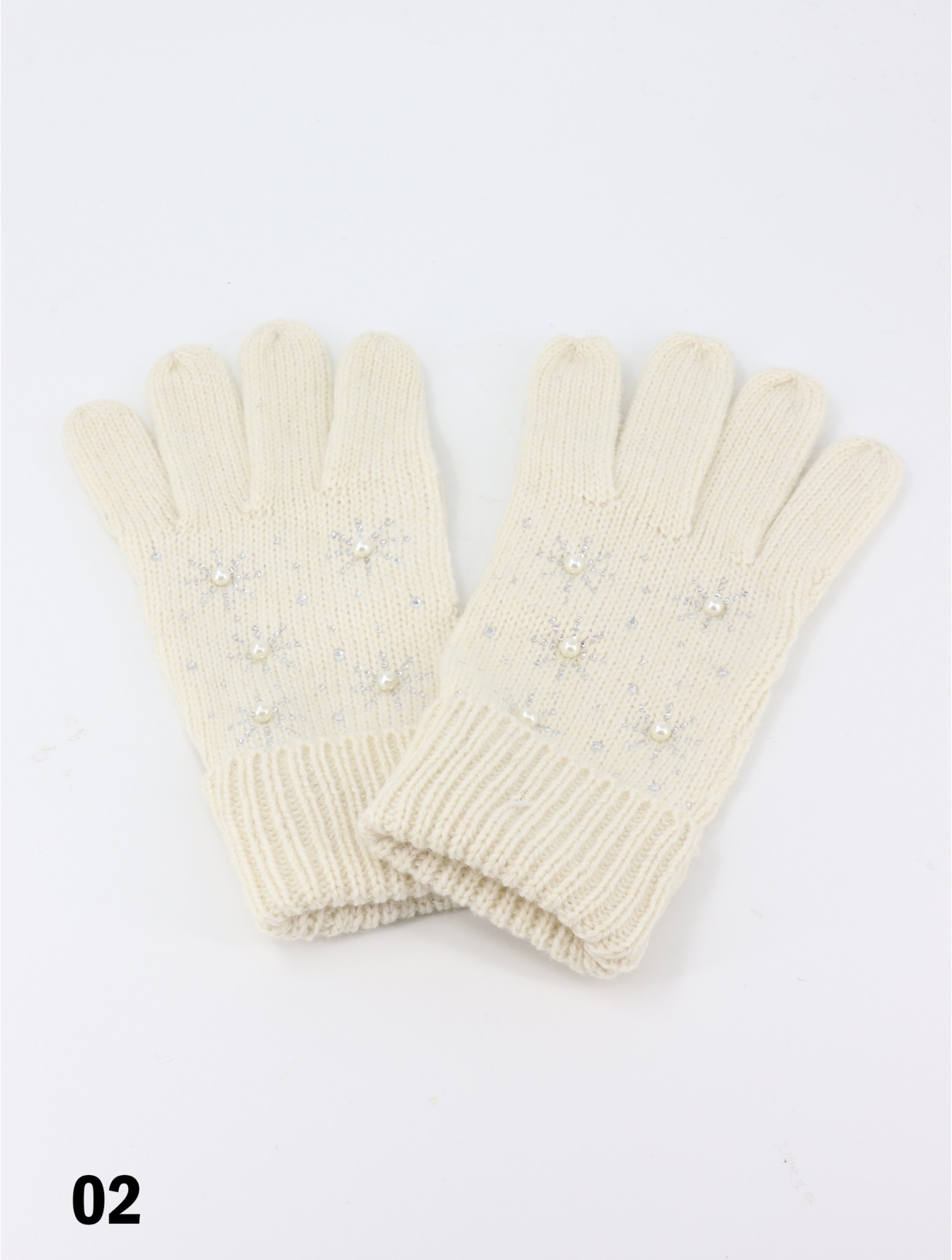 - Description: Minimum 3 ea. Snowflake fashion knitted gloves for winter and the holidays. Soft material with 30% wool and 70% acrylic. Gloves only. Colour: Cream