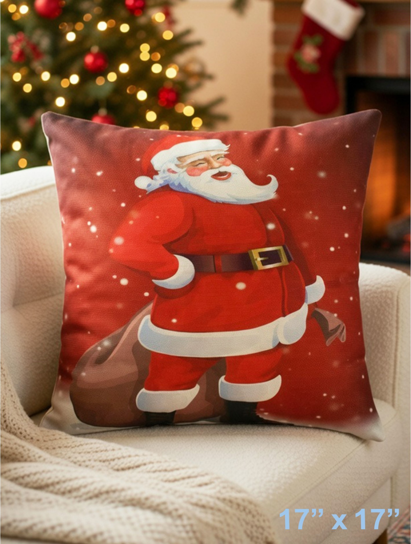 - Description: Minimum 2 sets. Santa Claus print cushion cover with filler. Great for window display and home decor. Color: Red