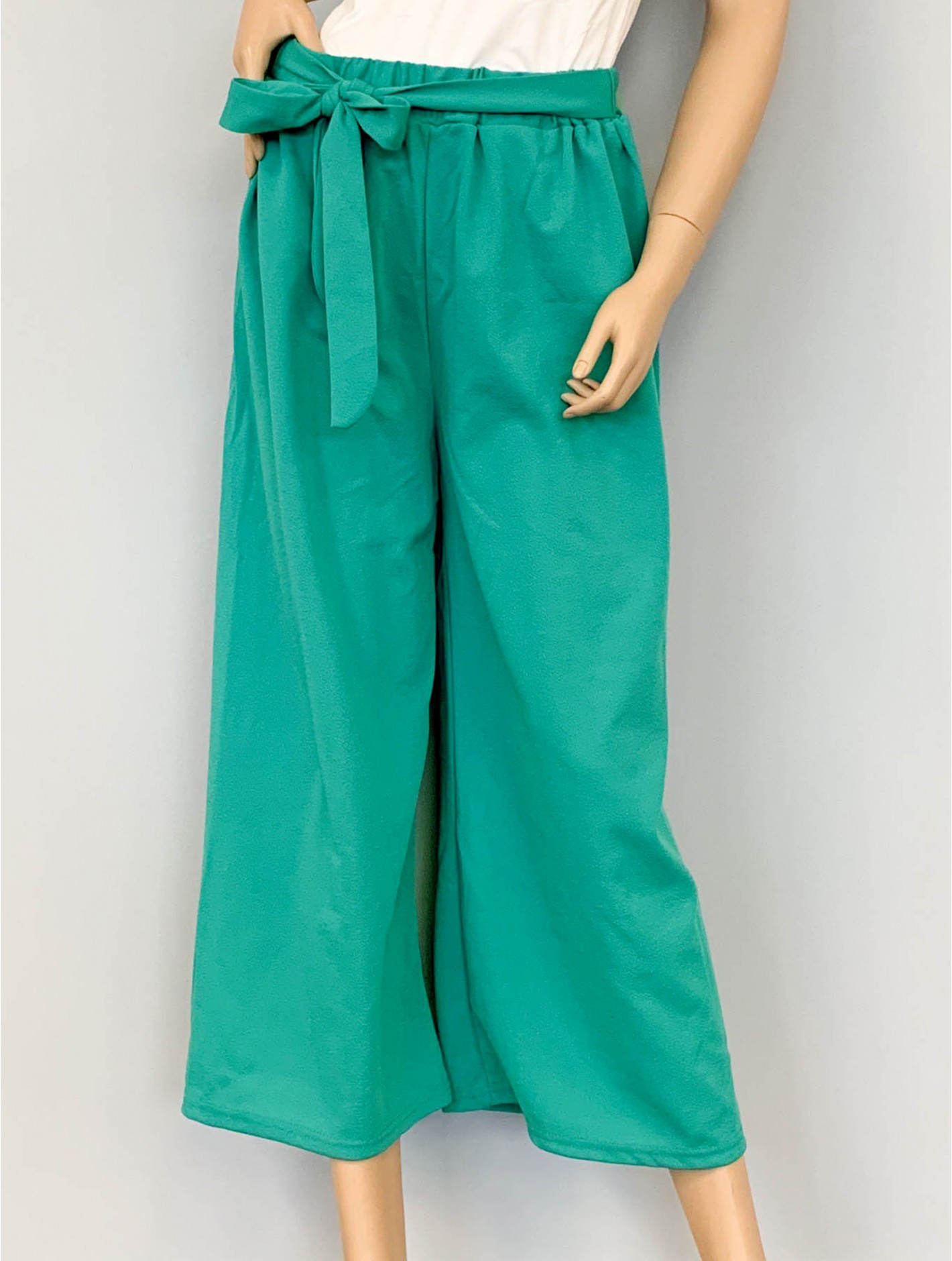 - Description: Minimum 2 pcs. This super soft wide-leg crop pants takes modern comfort from day to night. This pant has flattering and convenient pockets, a comfortable stretchy wide waistband, and a versatile belt that can be detatchable. Can be dressed up or down. Made of polyester. Colour: Turquoise