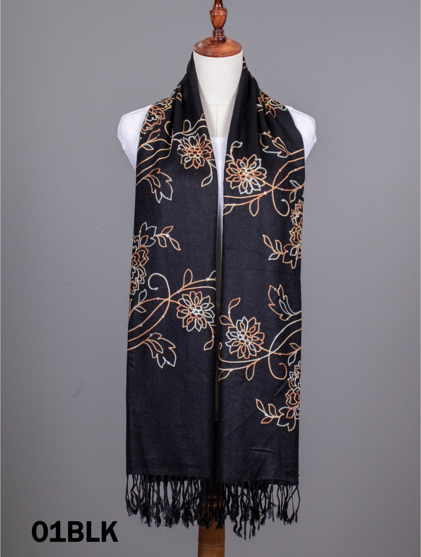 Tags: Two-Tone Thread Flower Embroidery Pashmina Scarf W/ Tassels & Sequins