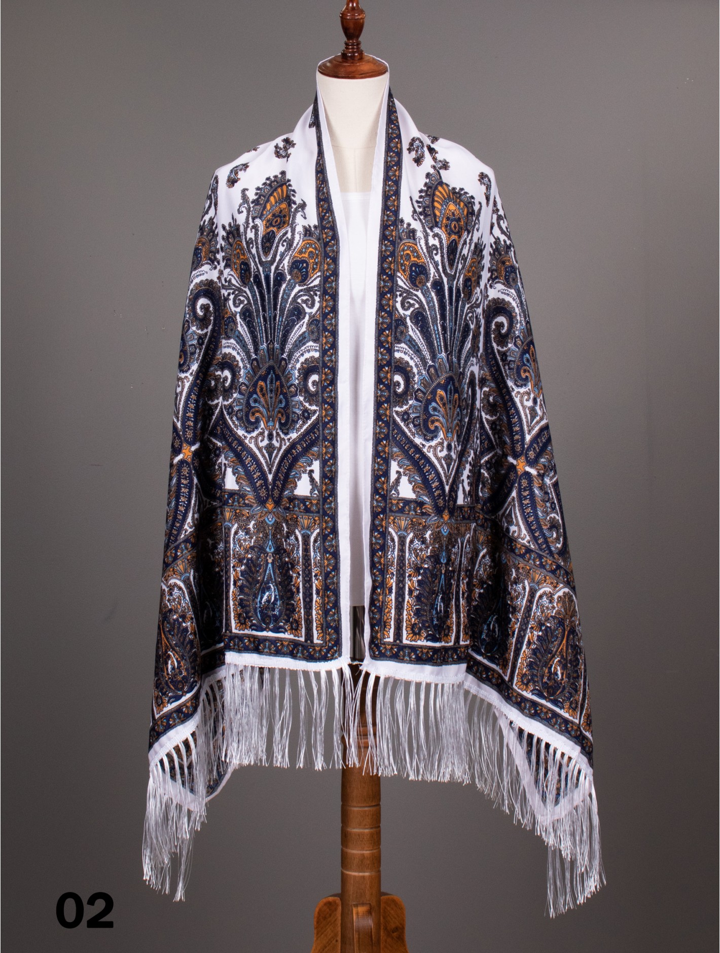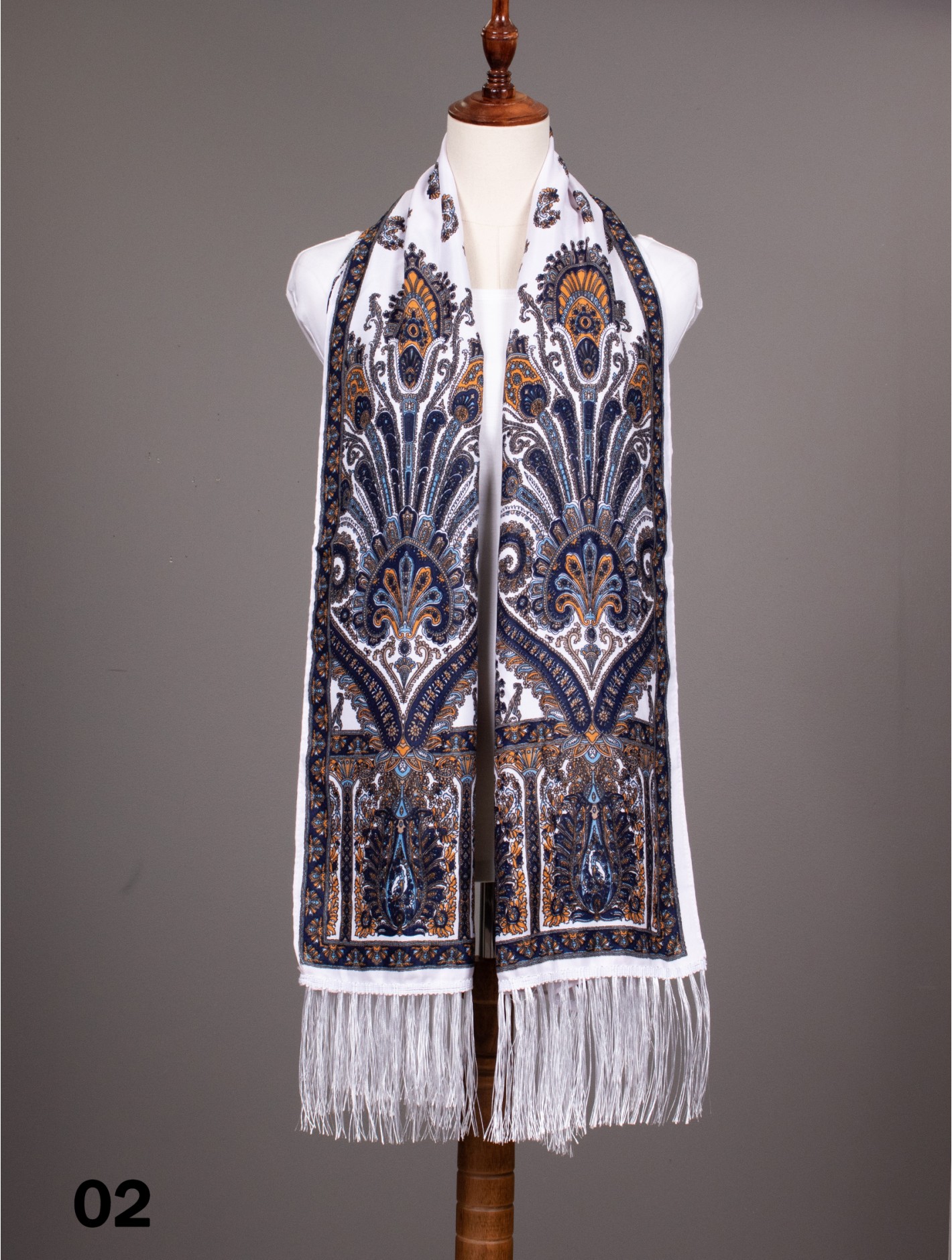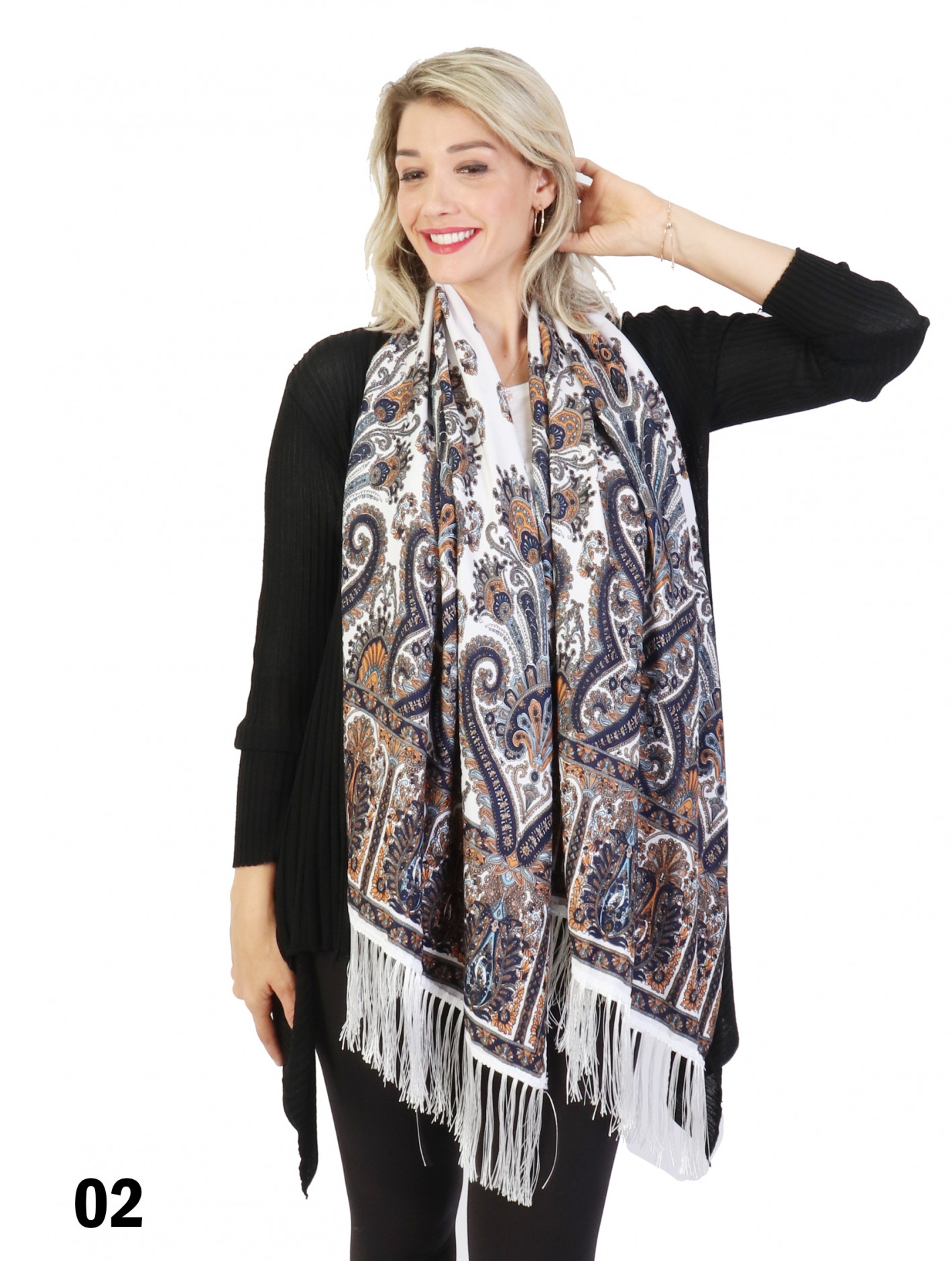 - Description: Minimum 3 Pcs. Paisley print pashmina with tassels bottom. variate of colors are available.