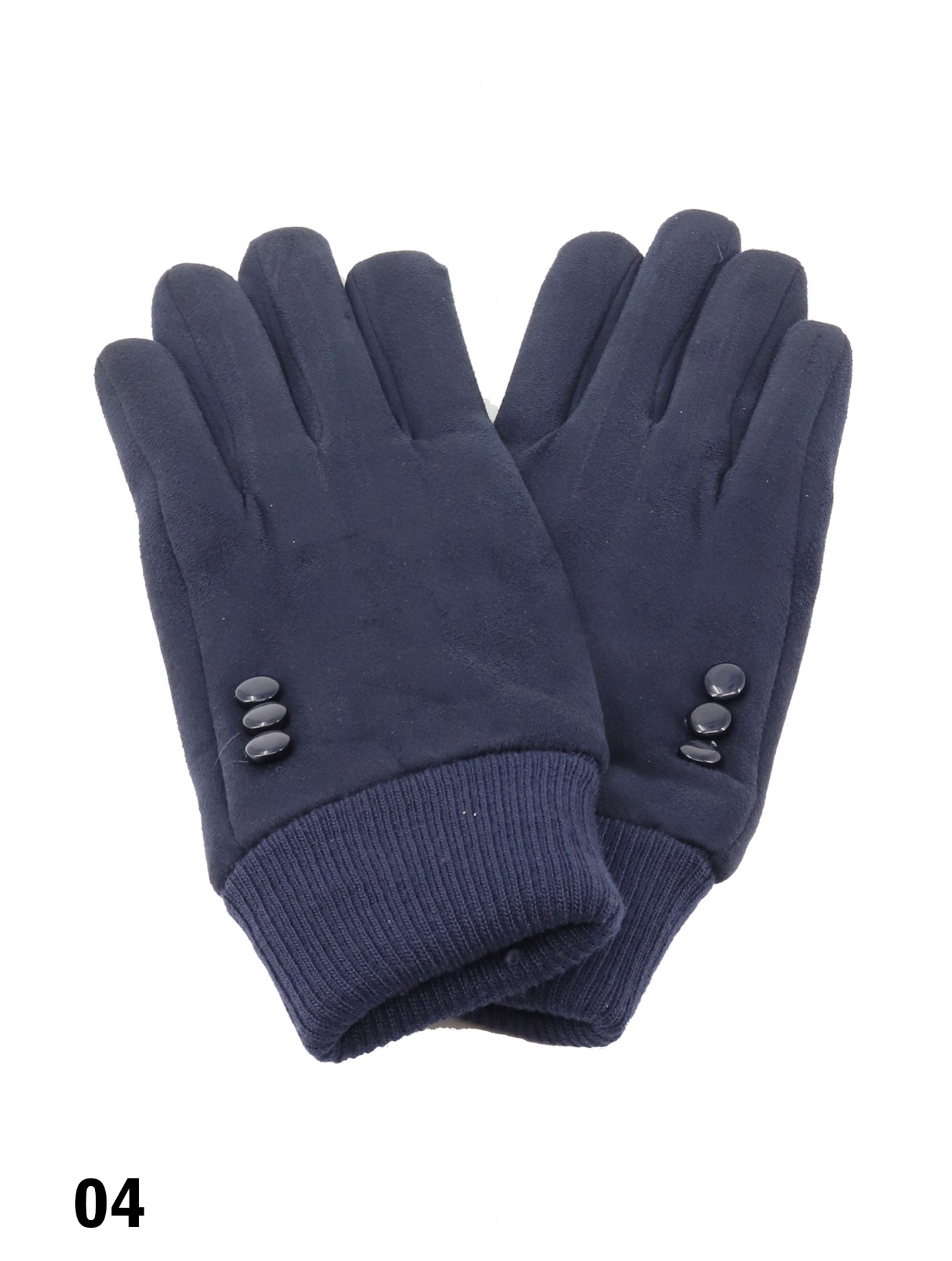Minimum 2 pairs. Unisex soft one side velvet leather cover gloves W/ elegance button. Classic style for a comfortable and warm winter. Gloves touch screen capable. Materials: 35% Acrylic, 65% Cotton