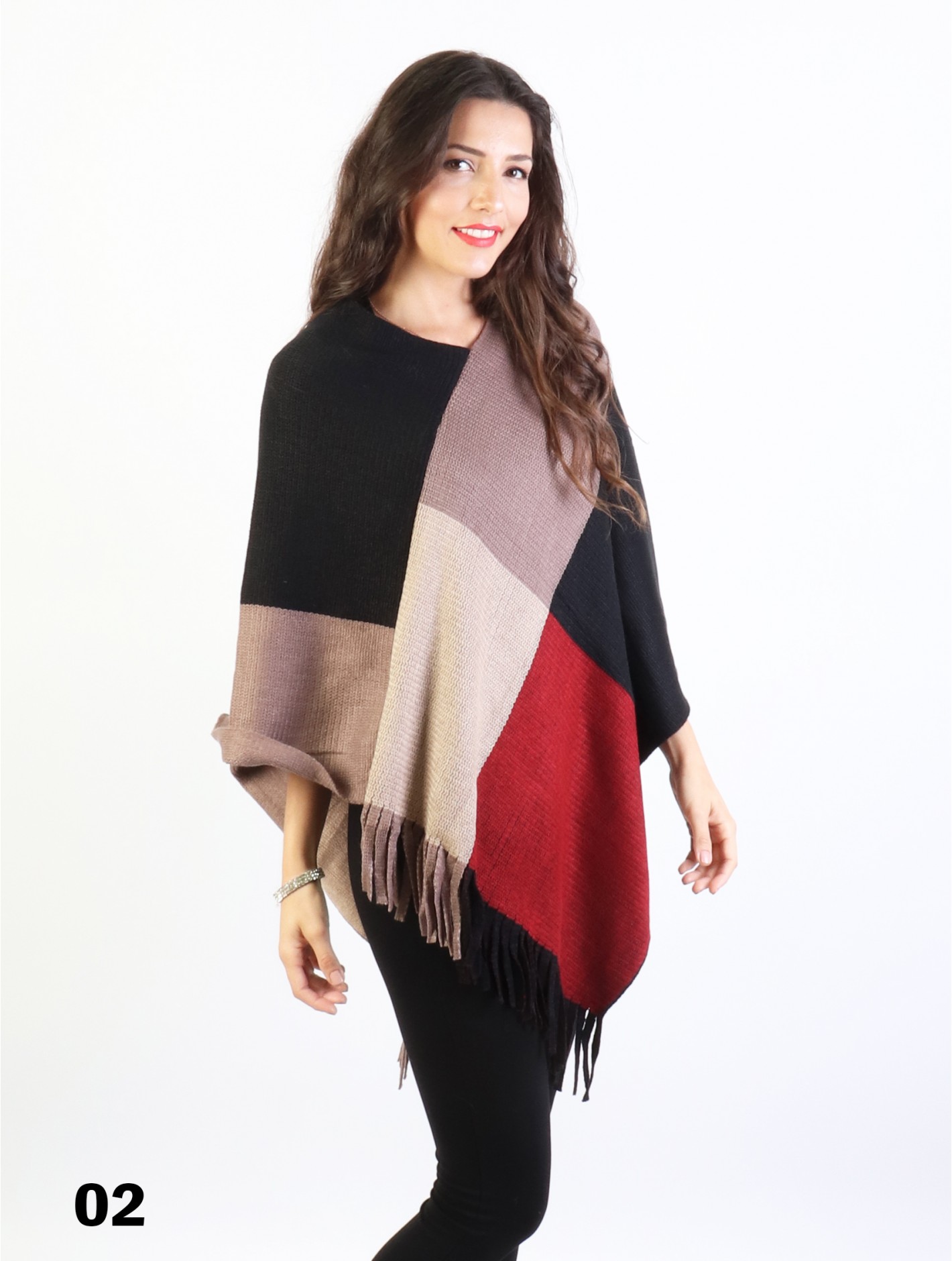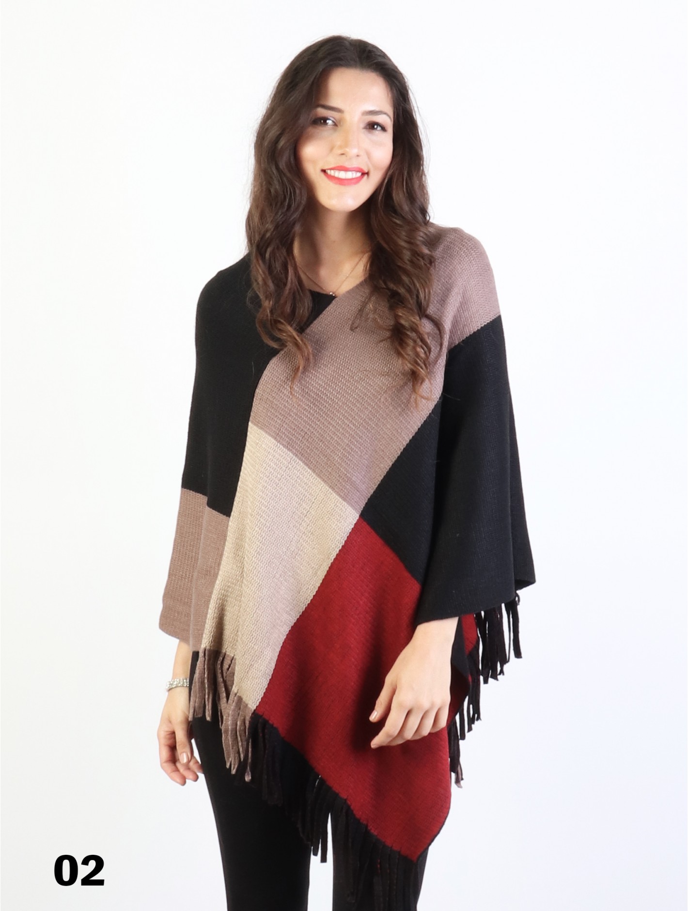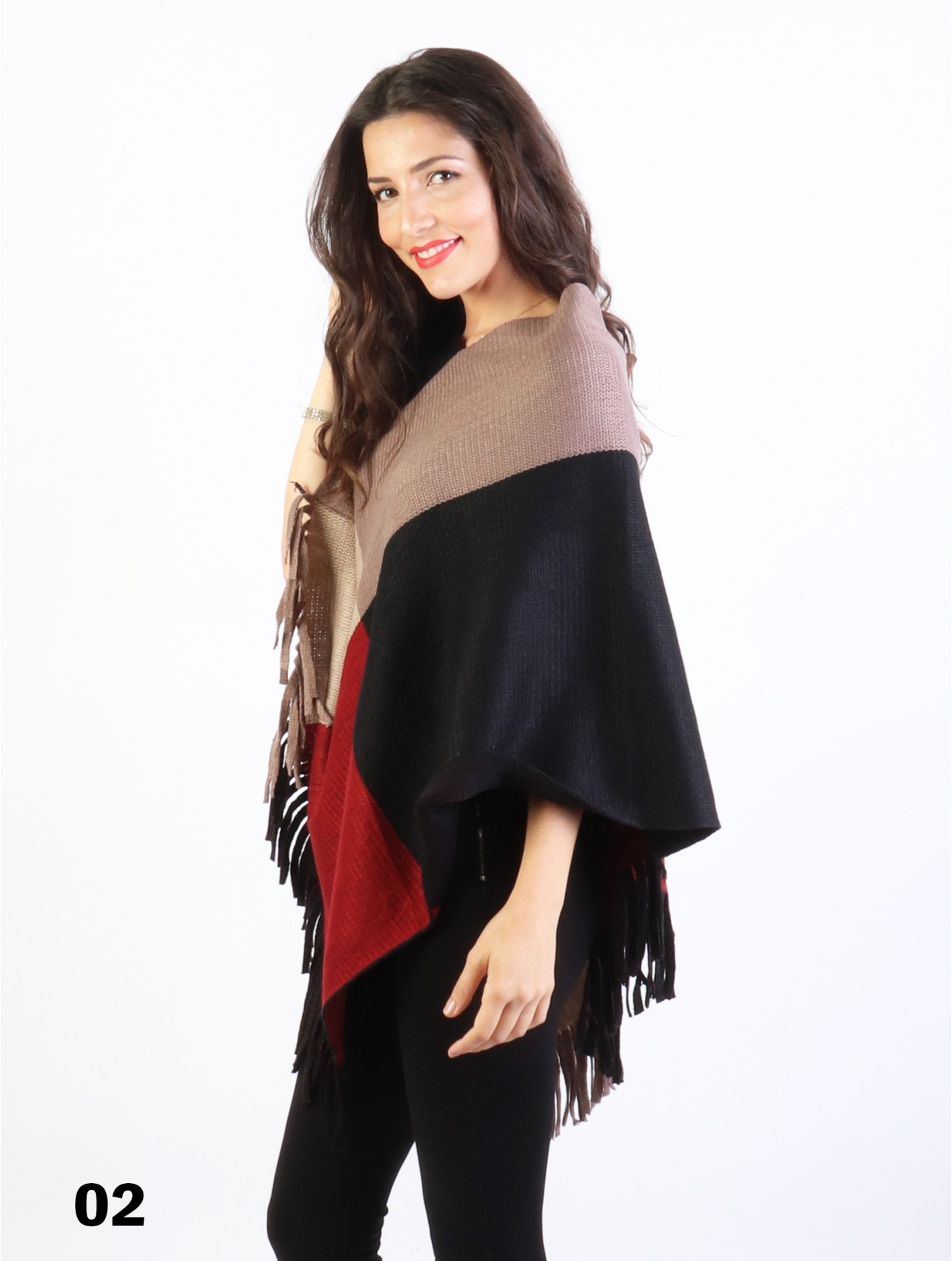 Minimum 2 Pcs. Trendy poncho with fancy fringes end. Perfectly match any type of style clothes in the fall and winter.