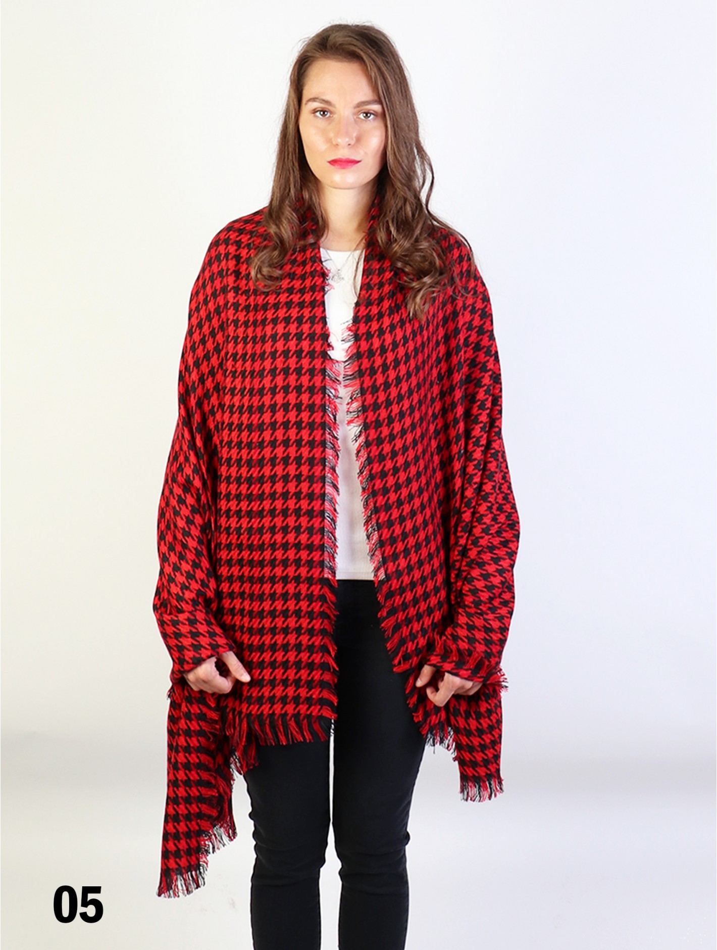 - Description: Minimum 2 pcs. Extra Soft. 100 Acrylic. This plaid blanket cape is a leading style this season. Trendy pattern scarf made from warm Acrylic blend. Wear on your shoulders, loop or as a regular scarf. Colour: Red