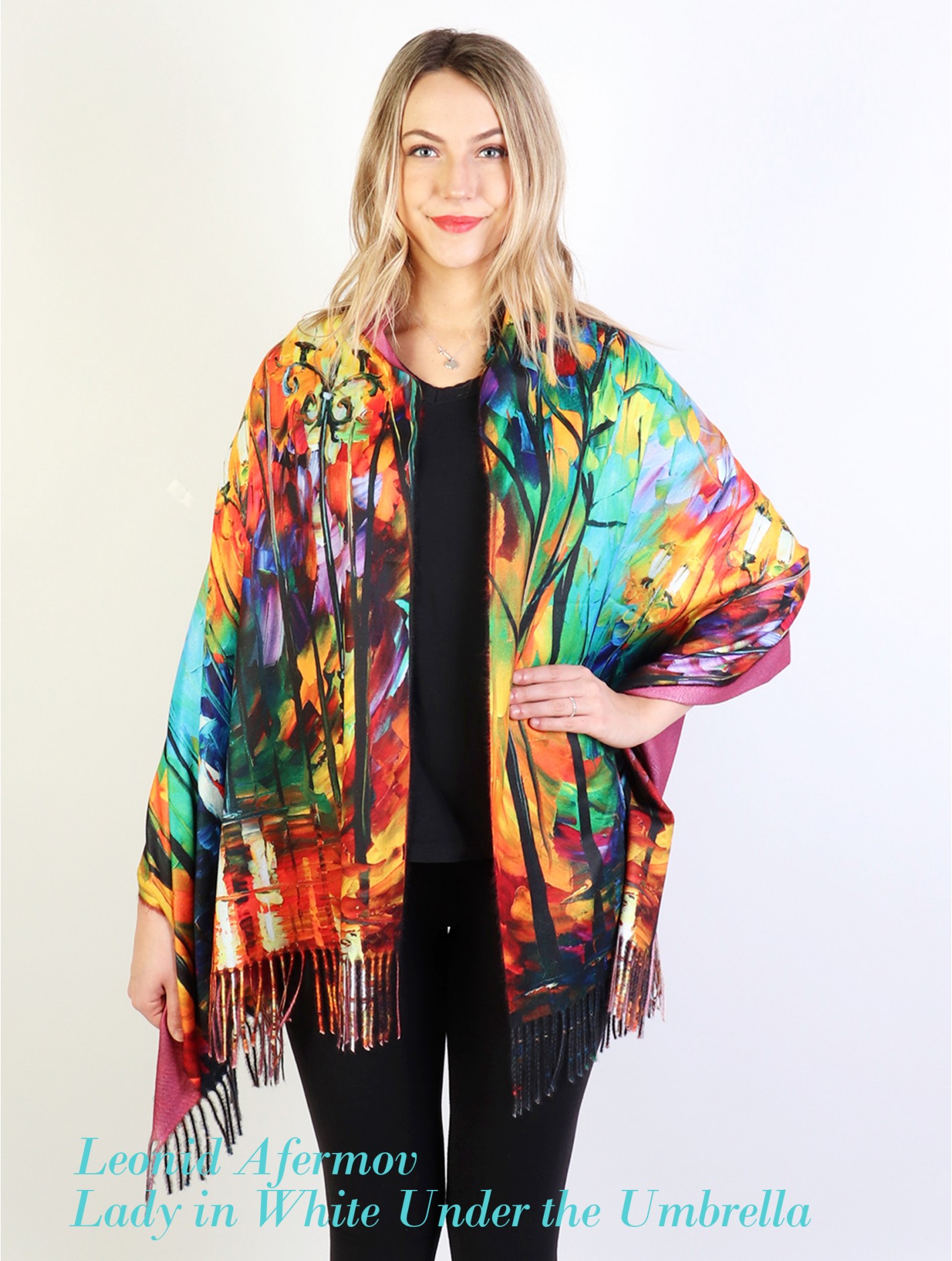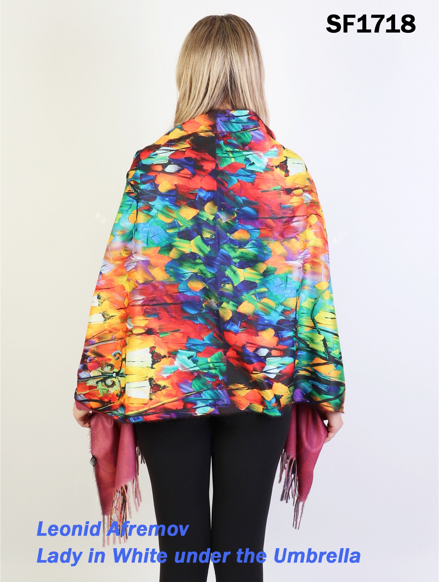 Oil painting design fashion Scarf with tassels. Soft touch feeling, great for any spring and summery styles. Minimum 2 pcs. Matching Gloves: GL127513