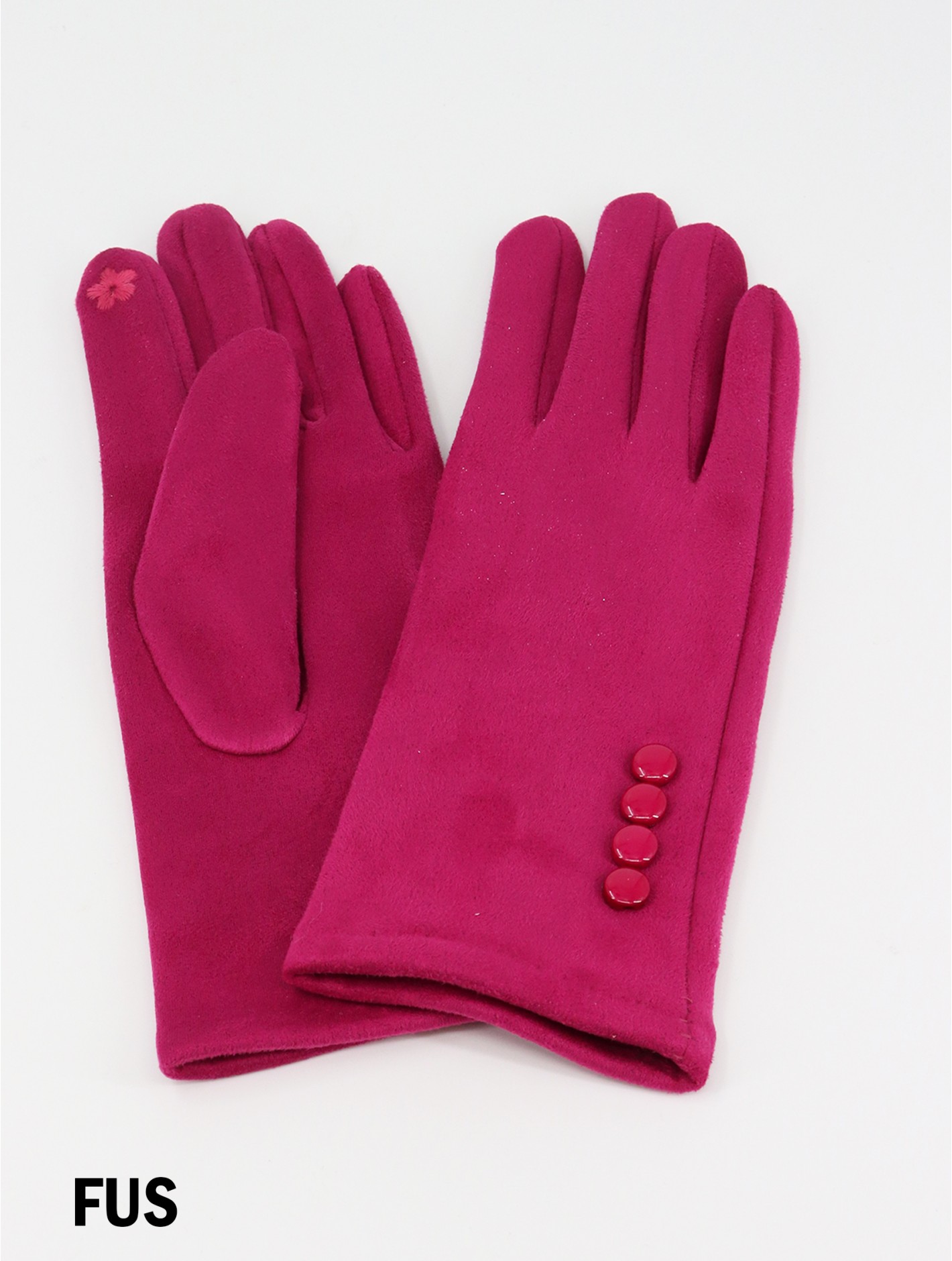 - Description: Minimum 3 pairs. Ladies soft poly blend glove. Stitched Button Touch Screen Glove. Gloves touch screen capable. Colour: Fuschia