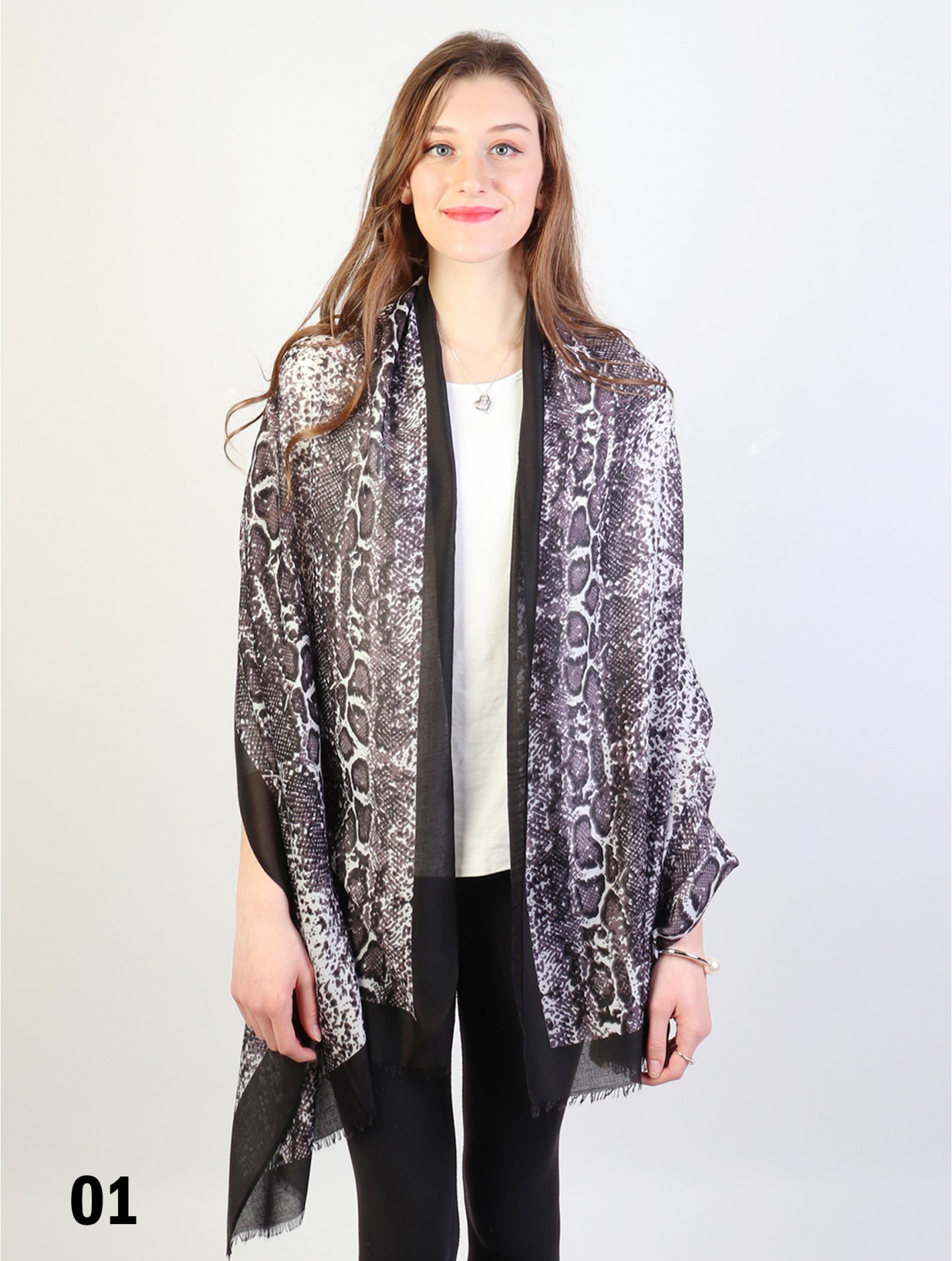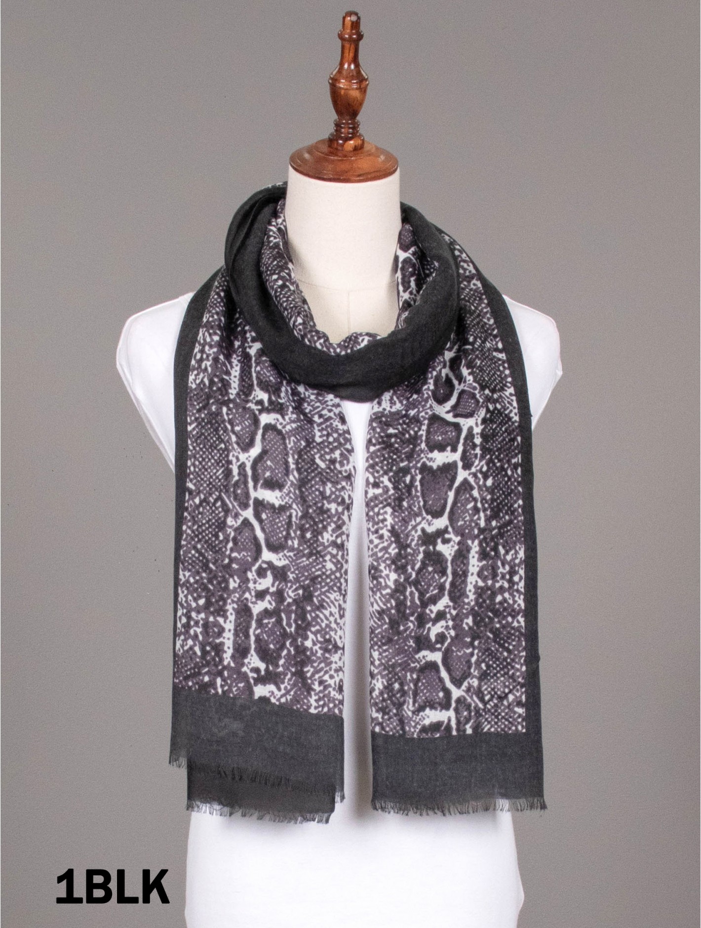 Minimum 3 pcs. Gorgeous Snake Skin print scarf that can be paired with multiple outfits. Light weight fabric that is great for any spring and summery styles. Colour: Black