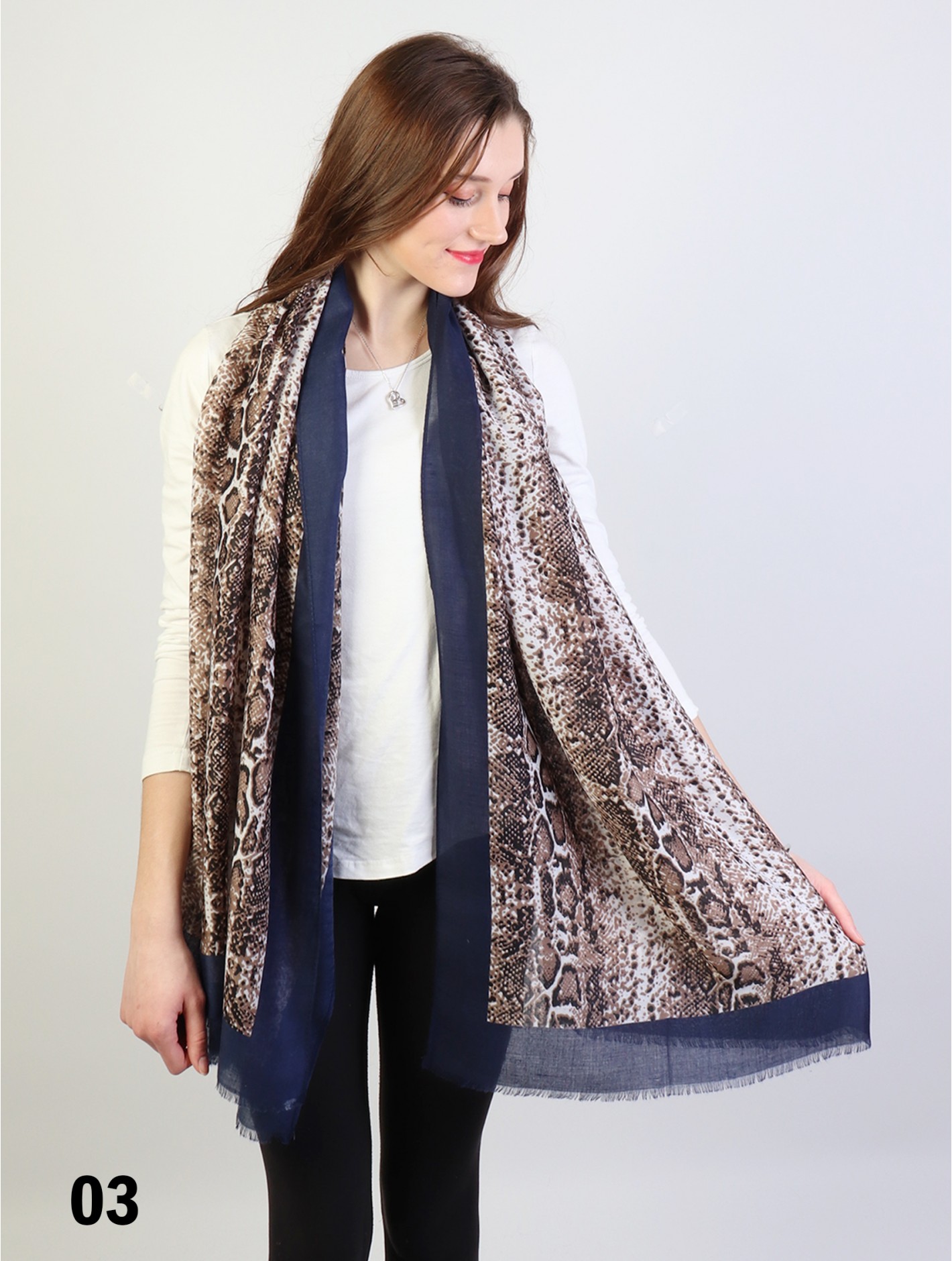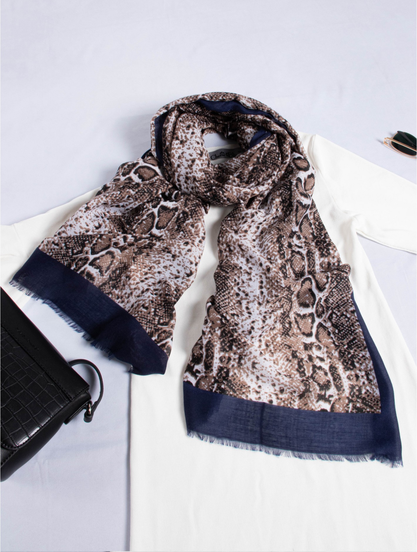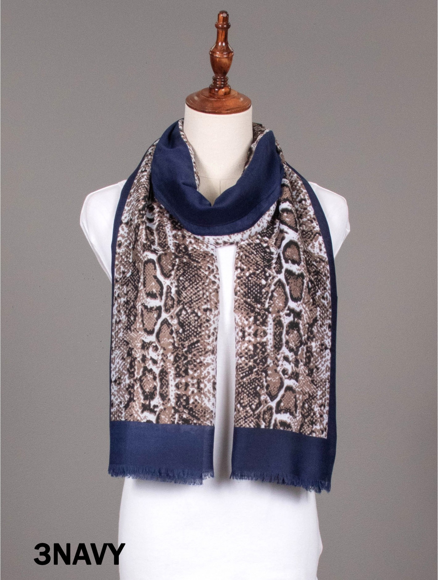 Minimum 3 pcs. Gorgeous Snake Skin print scarf that can be paired with multiple outfits. Light weight fabric that is great for any spring and summery styles. Colour: Navy