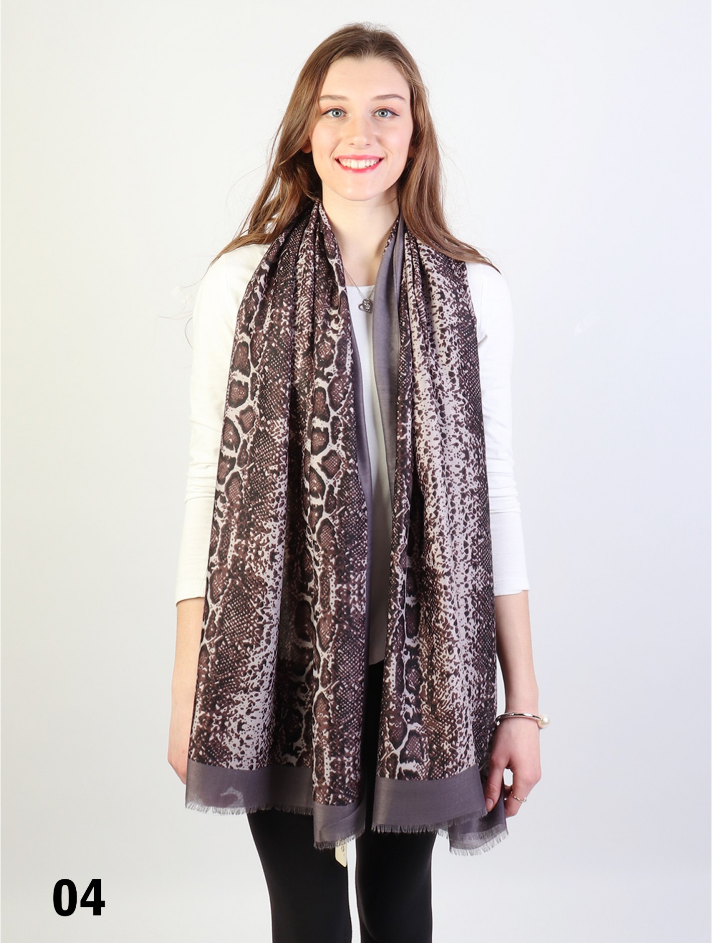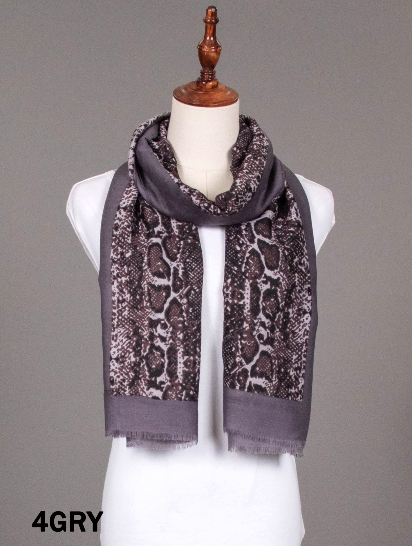 Minimum 3 pcs. Gorgeous Snake Skin print scarf that can be paired with multiple outfits. Light weight fabric that is great for any spring and summery styles. Colour: Grey