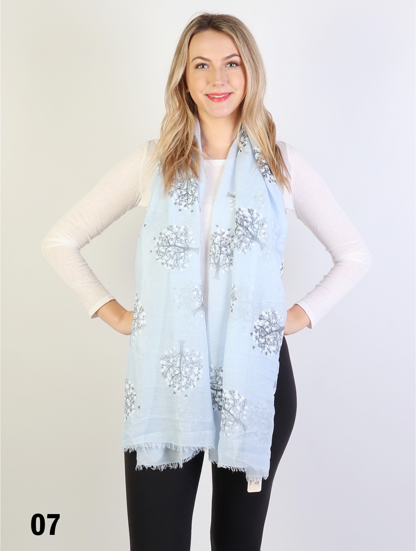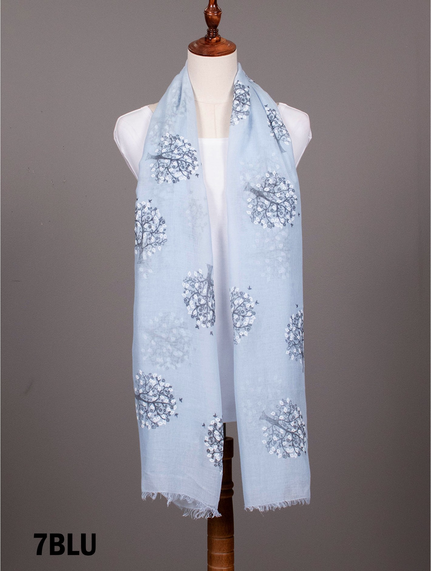 Minimum 4 pcs. Gorgeous tree of life patterned scarf that can be paired with multiple outfits. Light weight fabric that is great for any spring and summery styles. Colour: Blue