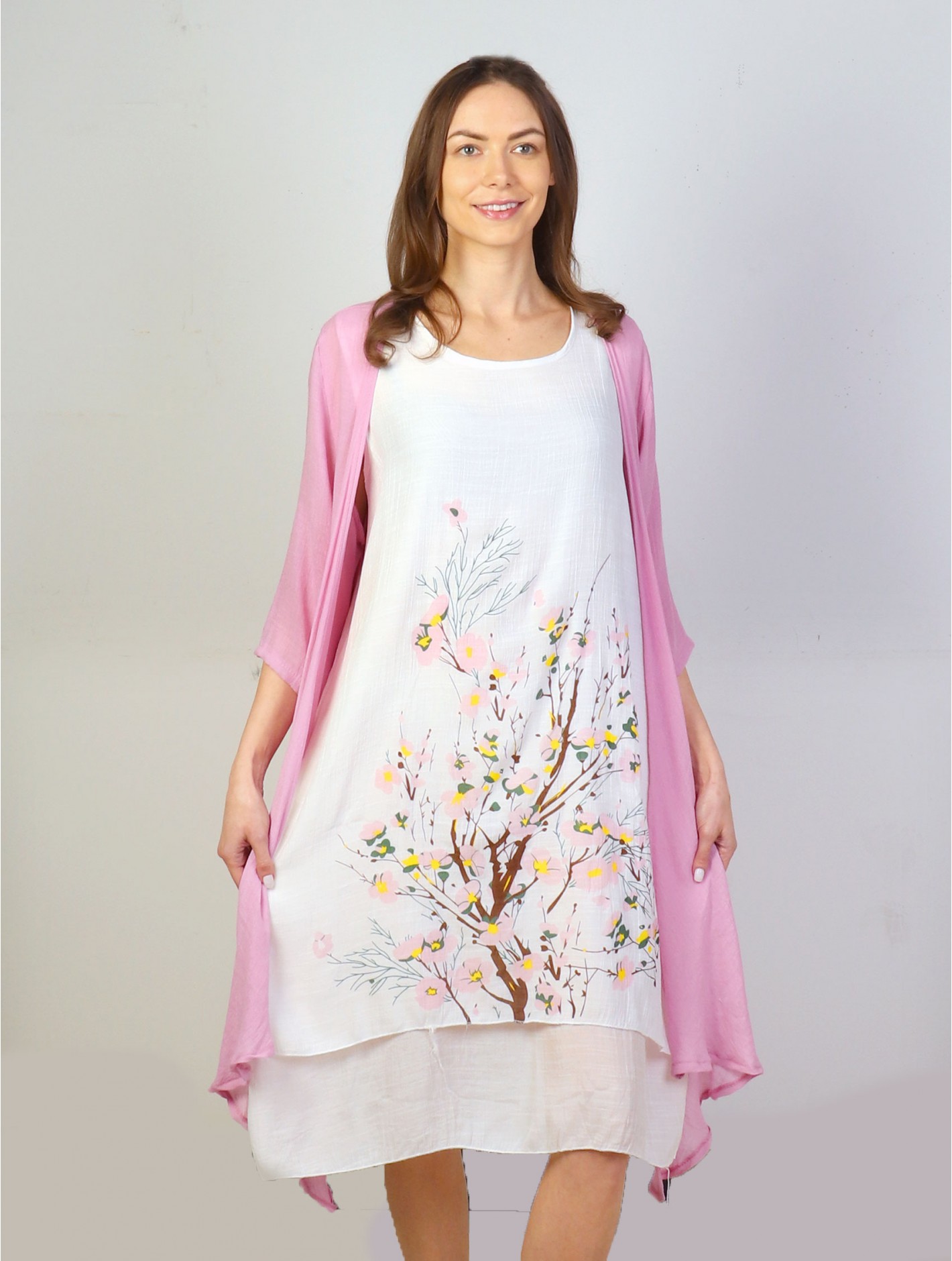 Bloom in style with the Layered Shift Dress with Cherry Blossom Print. This dress exudes effortless charm, featuring a delicate cherry blossom pattern that evokes the beauty of spring. The layered design offers a soft, flowing silhouette, enhancing its feminine appeal while allowing for free, easy movement. Crafted from lightweight fabric, this dress is perfect for sunny days, garden parties, or brunch with friends. With its timeless elegance and versatile design, this dress is sure to become a go-to favorite in your wardrobe. Min 2.