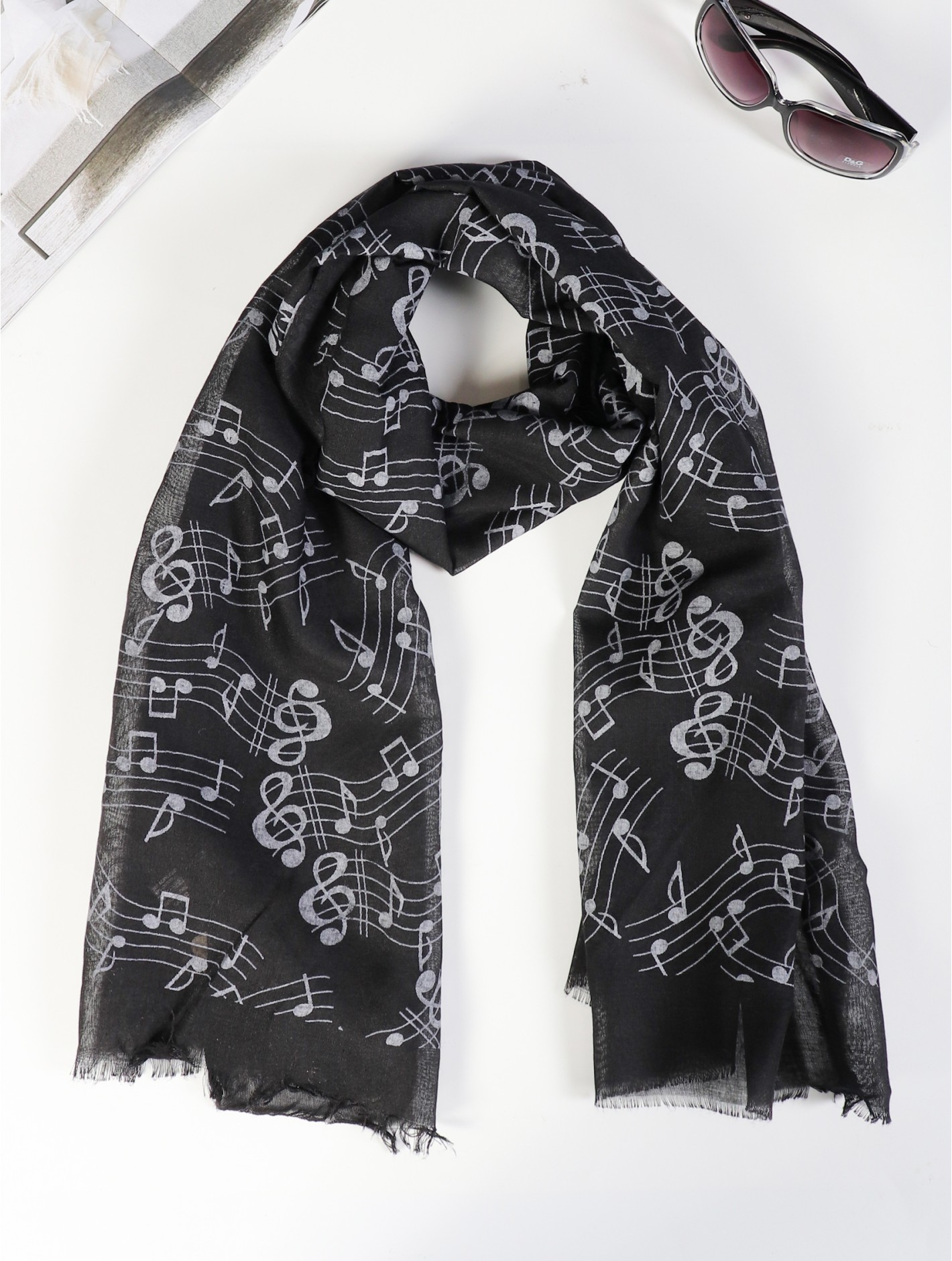 Minimum 4 pcs. Music notes patterned scarf for any music lover. Light weight and breathable material for the upcoming season . Colour: Black