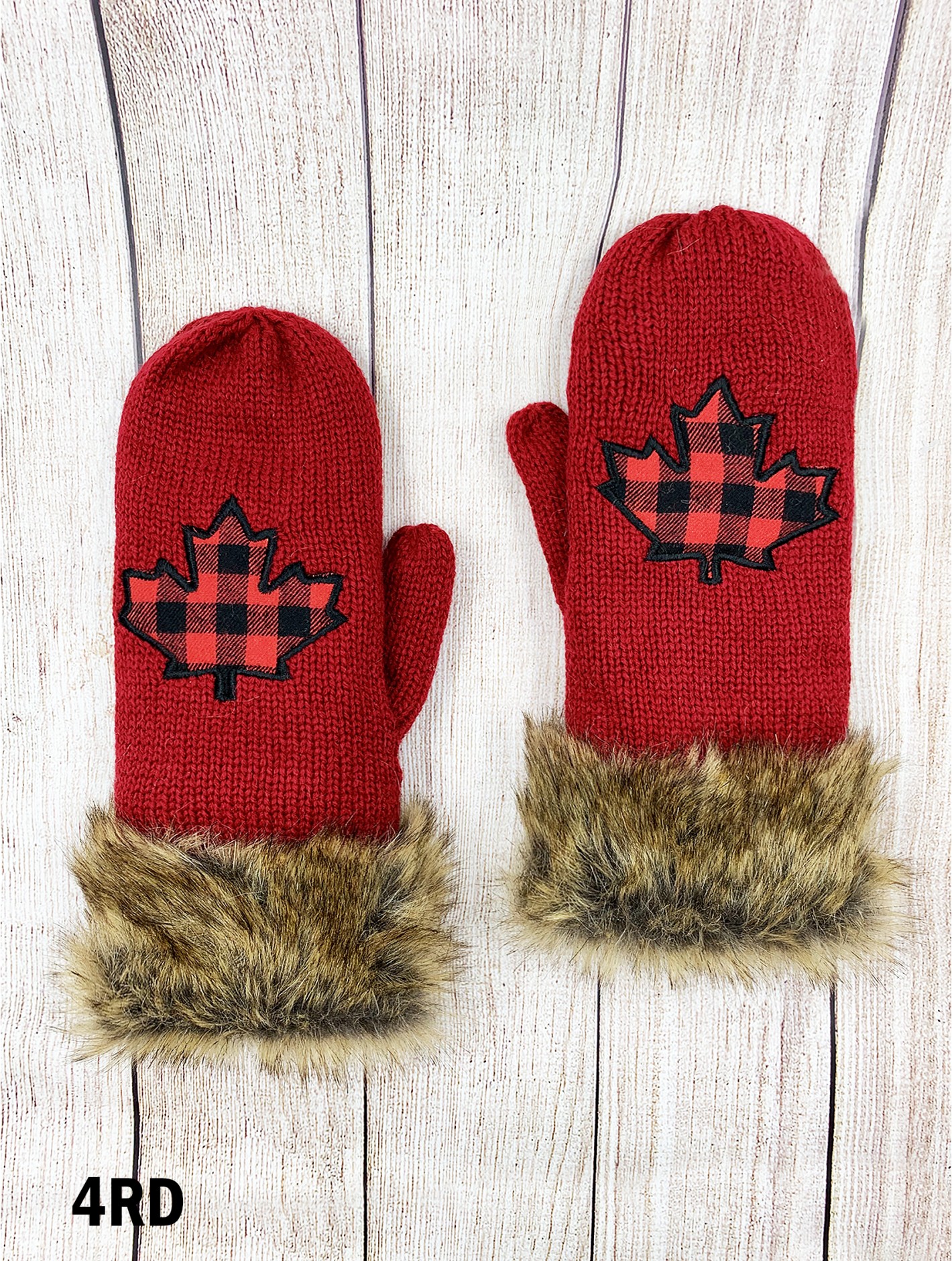 Minimum 3 pairs. Great double layered winter Mittens to keep warm. Plush inside. Canada Themed pattern Mittens W/ Plush inside.